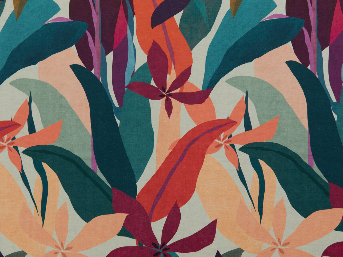 Made in Italy at a renowned printer, FLEUR D'ORANGER offers a colourful reinterpretation of ETAMINE Paris flowers. It presents the abstract interlacing of orange blossoms from Mediterranean gardens, printed digitally on the shores of Lake Como. Its remarkable character lies in the artistic colour separation of the design into 35 delicately chosen colours, printed on a linen cloth. Its "Energy" finish gives the linen an elegant look and a soft drape.