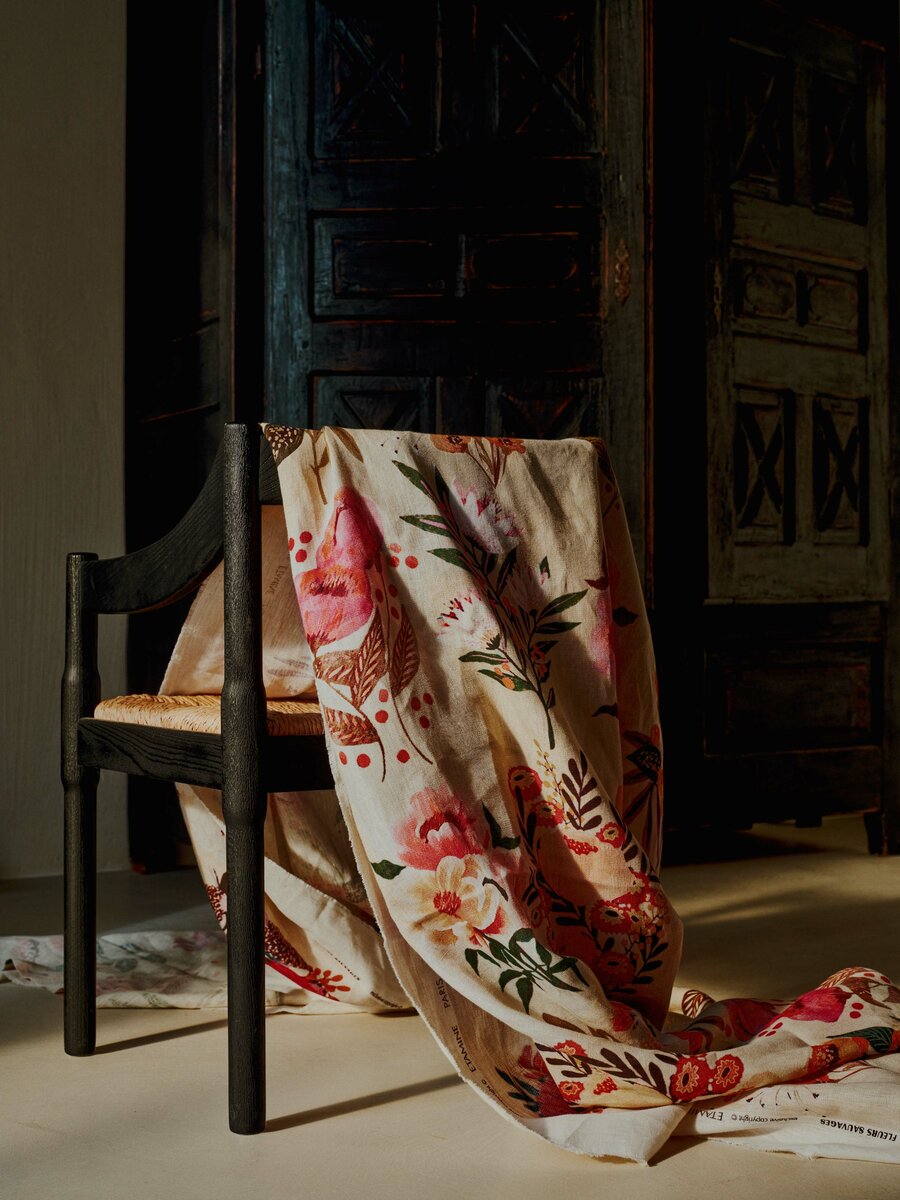 FLEURS SAUVAGES—also hand-painted—celebrates Etamine’s love for florals.
