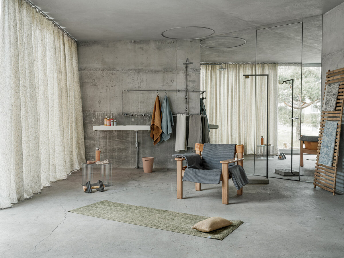 Floreana, an island in the south of the Galápagos archipelago, volcanic on one side and tropical on the other, some 1,000 kilometers from the mainland, was the scene of a grotesque sex-and-crime affair in 1934 among its first inhabitants – German dropouts who, according to legend, preferred to be naked and live in a corrugated iron hut. In the collection, FLOREANA is an exquisite Belgian linen fabric, delicate, shimmering and of an understated two-tone color. A graphic foliage is embedded in a strong zig-zag stripe, a bit like lush tropical plants on a corrugated iron roof.