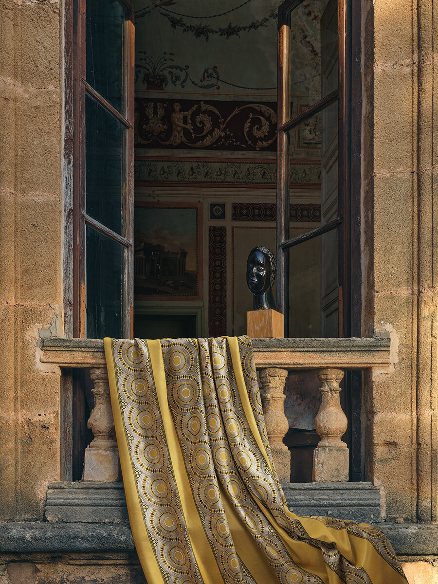 The mosaics that grace the walls of the baroque cathedral of Monreale in Sicily served as the inspiration for this highly attractive decor fabric.