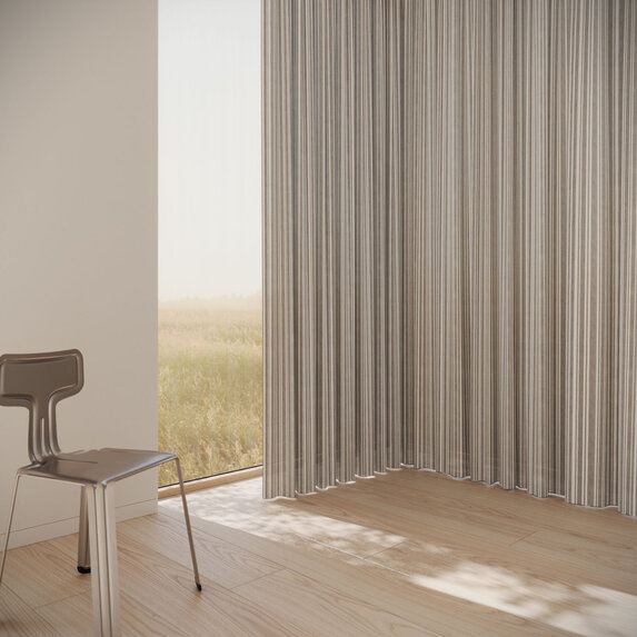 FRIZZANTE brings movement and rhythm through its lively stripe. Produced with solution-dyed technology, it delivers exceptional colorfastness, water and oil resistance (PFAS-free) and sustainable production with minimal water use. Ideal for sun-drenched windows, conservatories or breezy interior partitions - refreshing like a summer day yet enduring like a classic.