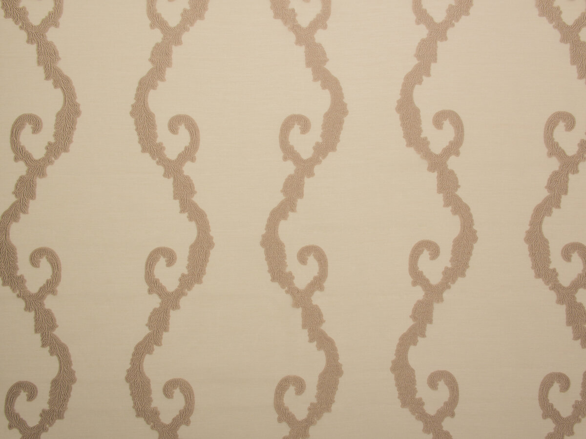Playful, extra-wide tendril design woven with the Scherli technique. The different weave effects create a captivating light and shadow effect within the motif and give this textile its understated charm.