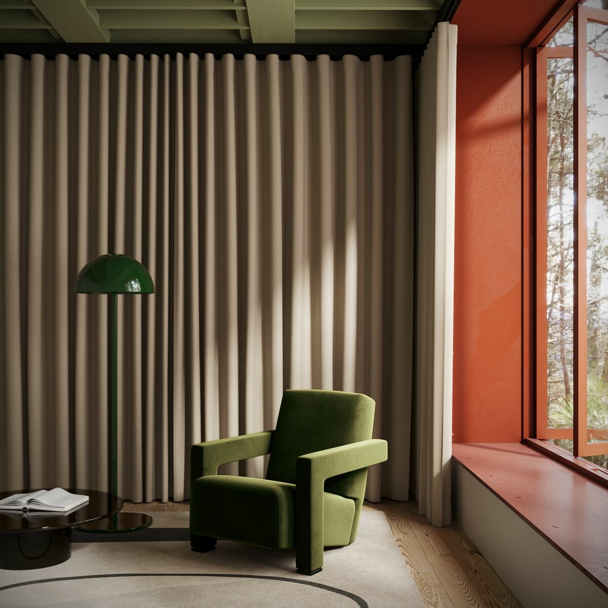 Good morning! Good night! GOOD MOOD. This multifunctional blackout fabric ensures you’ll be in a positive mood 24/7. The multi-layered, flame-retardant plain-woven fabric offers blackout, fire protection, sound absorption, thermal insulation, and a top price-performance ratio. In other words, it lets you sleep soundly, keeps the cold out, gives you peace of mind, is easy on your wallet, and looks great!
