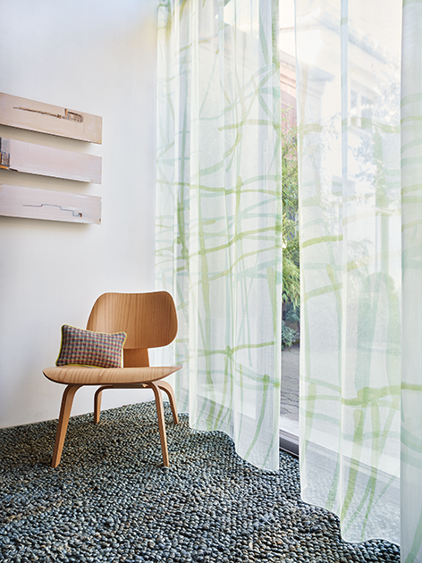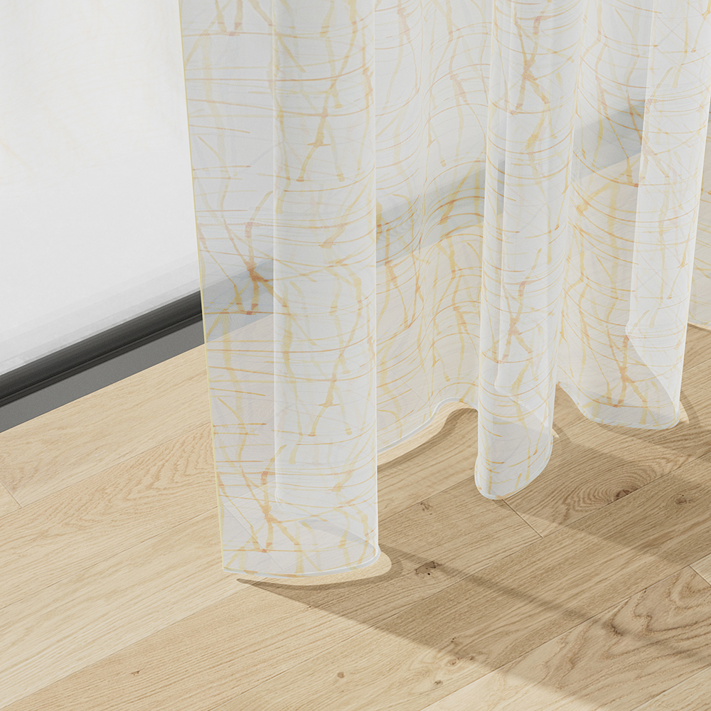 GROOVY is designed for movers and shakers! Its freehand graphic pattern with wild lines and harmonious colour gradients is sure to freshen up your home in green/aqua, enthral you in orange/yellow or help you to unwind in grey/beige and cream/white. It is flame-retardant, and easy on the eye too, thanks to a brilliant print technique on a marquisette-like grid structure.