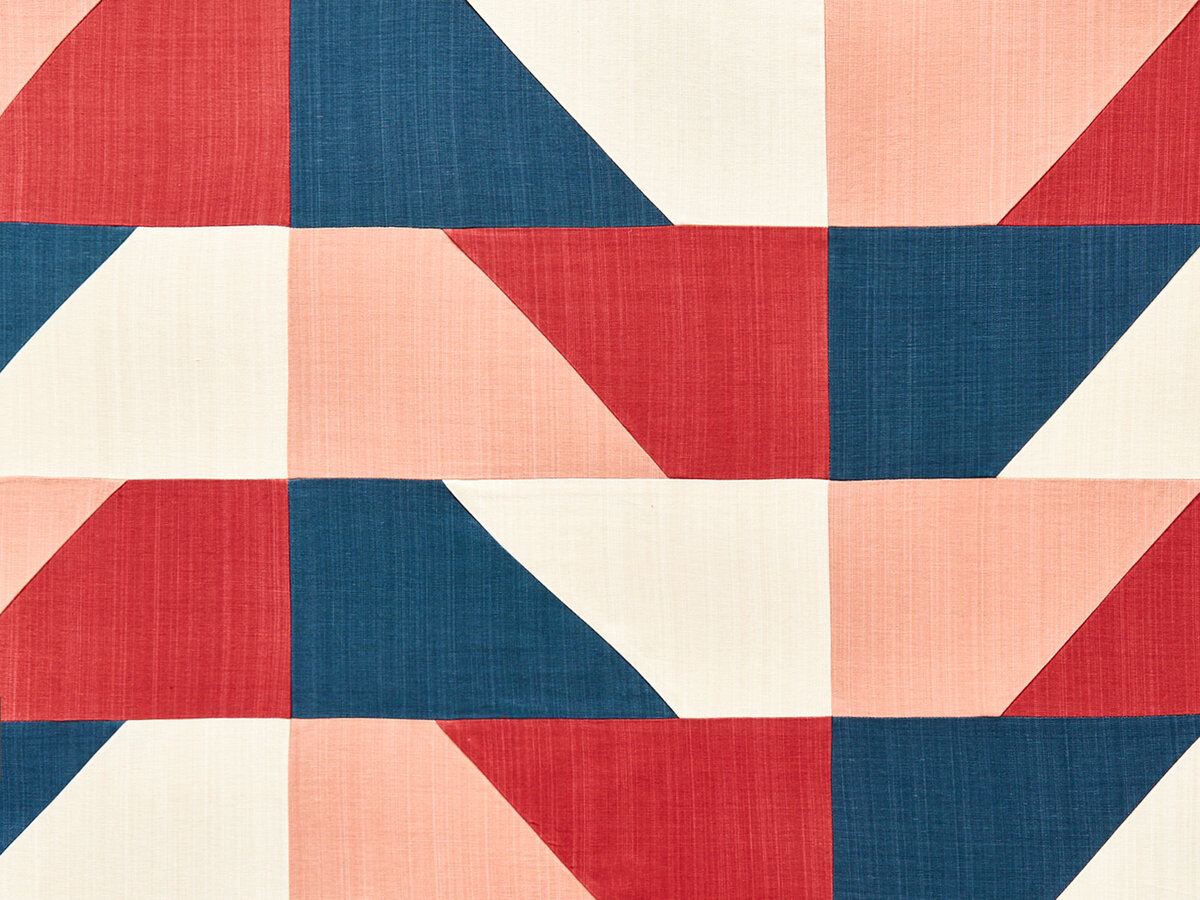 Inspired from a sculpture by Louise Bourgeois, HAMPTON PATCH is a quilted four color patchwork of cut trapezoids pieced together to create rhythm and depth. We use the age old method of hand dying to achieve the variation in color for each of the patches. A true labor of love, it takes about 20 skilled women three to five days to produce 25 meters of fabric using semi-automated sewing machines to piece the fabric swatches together. HAMPTON PATCH is a hand crafted work of art.
