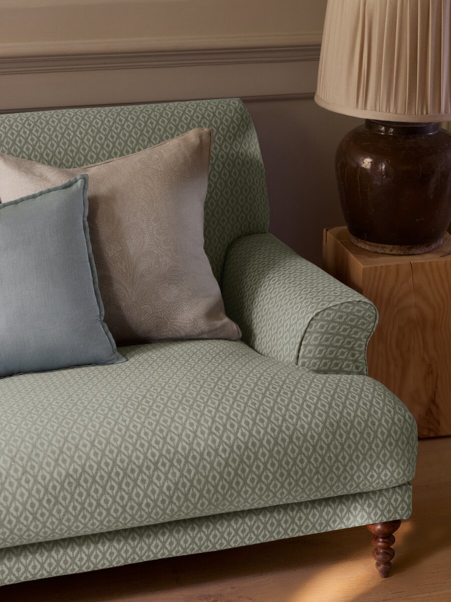A sumptuous wool with a surprising drape, ‘Hatton’ is a dual-purpose wool jacquard fabric that lends itself to both upholstery and drapery. Woven in Italy, the calming geometric repetition that recurs through the fabric is reminiscent of the sparkling windows of Hatton Gardens, littered with gems and rare stones refracting the light.