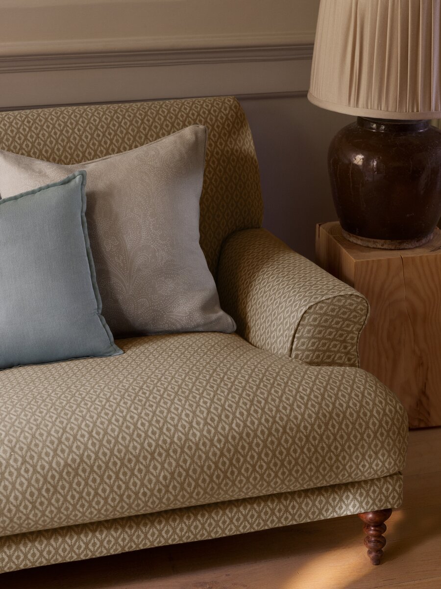 A sumptuous wool with a surprising drape, ‘Hatton’ is a dual-purpose wool jacquard fabric that lends itself to both upholstery and drapery. Woven in Italy, the calming geometric repetition that recurs through the fabric is reminiscent of the sparkling windows of Hatton Gardens, littered with gems and rare stones refracting the light.
