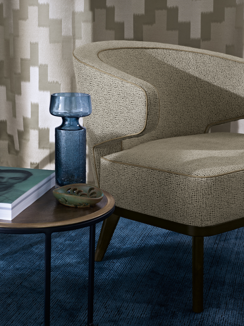 Hip-Hop is an upholstery fabric featuring a modern interpretation of the craquelure pattern. This all-over design blows you away with its dry, natural appearance. The colour palette comprises discreetly matching variants or creates accents with attractive contrasts, for example, in black and white. 30.000 Martindale