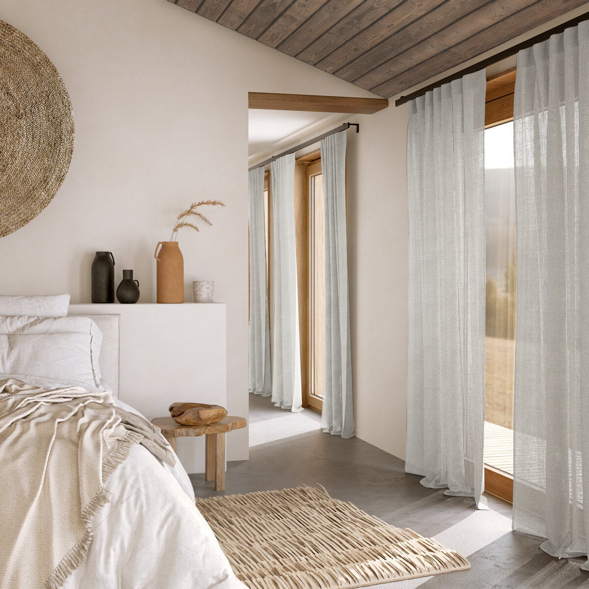 Elegance and modernity combine on the textile horizon: thanks to the high-quality net structure HORIZON can be applied in a sophisticated and clean-cut manner, but also draped in a more laidback way to electrifying effect. For the perfect look we recommend floor-length hanging. Nonchalance in perfect non-colors.