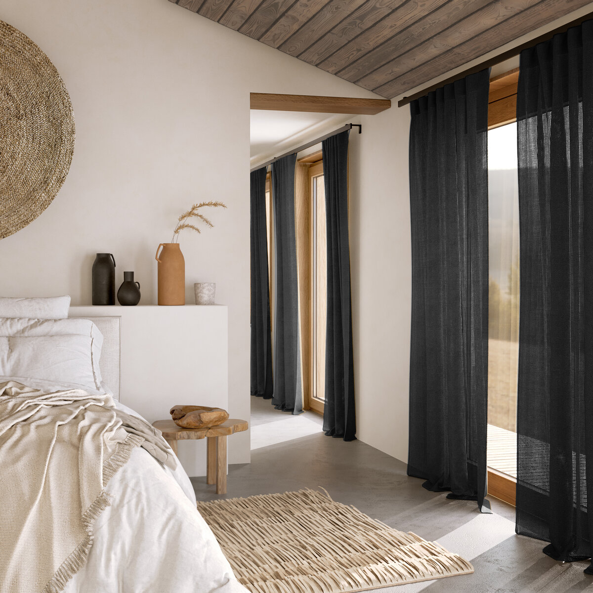 Elegance and modernity combine on the textile horizon: thanks to the high-quality net structure HORIZON can be applied in a sophisticated and clean-cut manner, but also draped in a more laidback way to electrifying effect. For the perfect look we recommend floor-length hanging. Nonchalance in perfect non-colors.