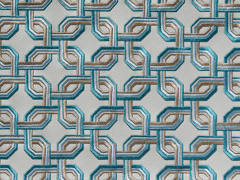 This is a decorative upholstery fabric in an all-over look with embroidered motifs on faux leather. The subtle nuance of the colour composition in the embroidery underscores the fabric’s three-dimensional effect and accentuates the rhythmic sensation created by the pattern. ICONA draws you in with its vibrant colour palette and clear graphic effect.