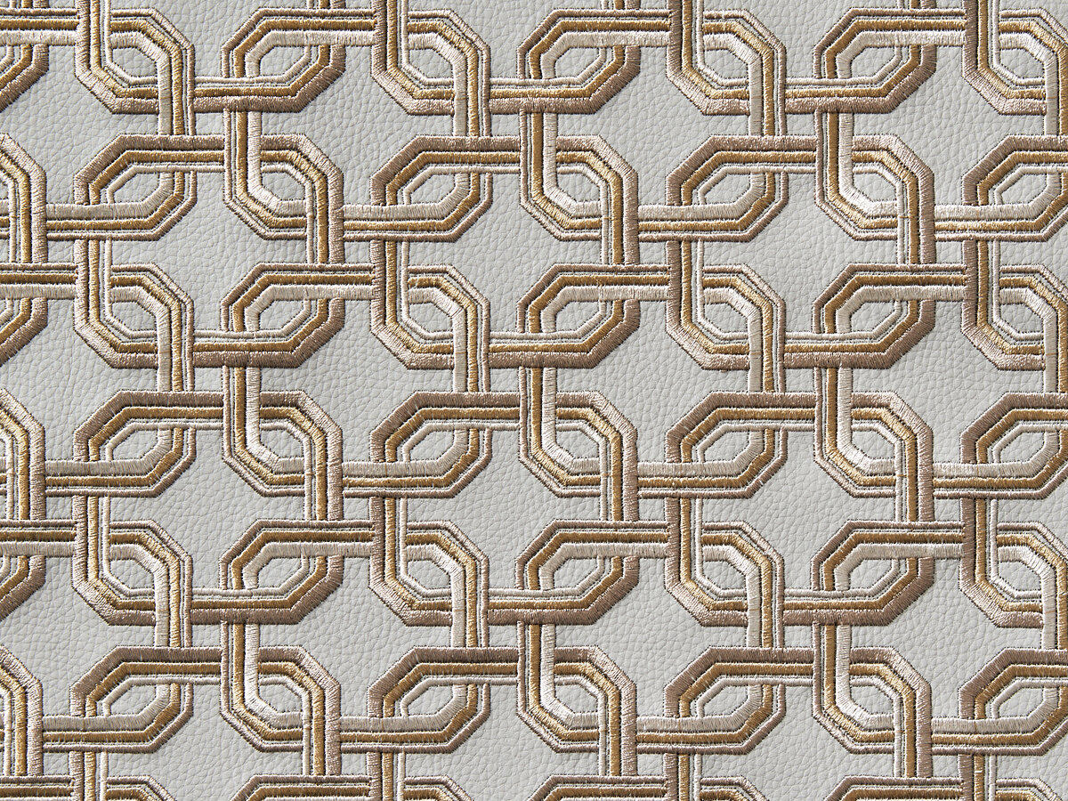 This is a decorative upholstery fabric in an all-over look with embroidered motifs on faux leather. The subtle nuance of the colour composition in the embroidery underscores the fabric’s three-dimensional effect and accentuates the rhythmic sensation created by the pattern. ICONA draws you in with its vibrant colour palette and clear graphic effect.