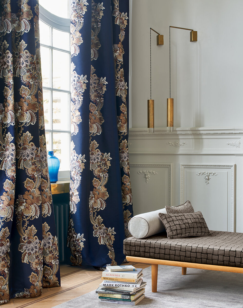 IL VENETO is a high-quality, two-toned velour with a classic graphic pattern. The special sheen of this velour gives the colours a unique radiance and emphasises the excellent quality of the fabric. This viscose velour also stands out because of its very high Martindale values and its durability.