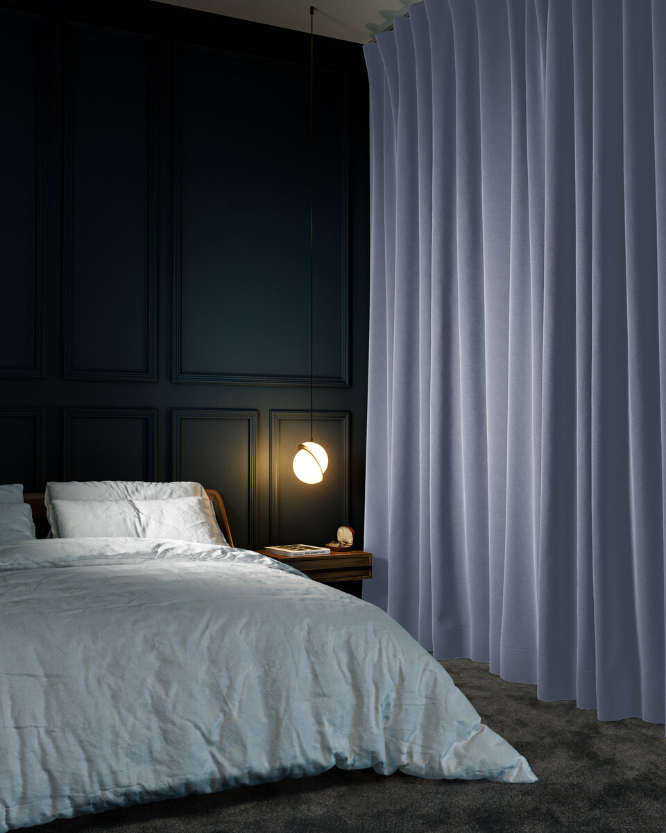 IMPULSE is a wonderful voluminous curtain fabric with sleep factor guaranteed. Thanks to its dimout character the prerequisites for restful sleep are ensured and its acoustic and thermal properties ensure a calm and cozy atmosphere. Sweet dreams!
