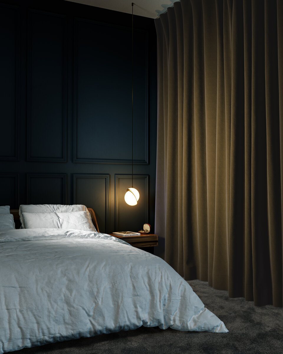 IMPULSE is a wonderful voluminous curtain fabric with sleep factor guaranteed. Thanks to its dimout character the prerequisites for restful sleep are ensured and its acoustic and thermal properties ensure a calm and cozy atmosphere. Sweet dreams!