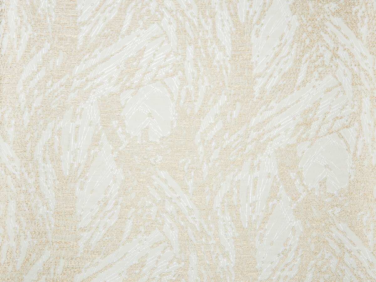 The abstract design of the jacquard fabric INTUITION thrives on the tension between texture, surface and line. Craftsmanship and elegance are cleverly combined by the interplay of voluminous linen yarn with shimmering metallic accents, emphasizing the powerful dynamics of the generous brush strokes.