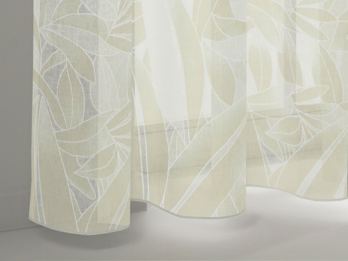 Jungle JOURNEY. This cool burn out transports you into a world of huge, decorative leaves and white outlines that appear to secretly dissolve into nothing. The dramatic staging of colours on the base design leaves nothing to be desired. Its combination with the thick base fabric TRAVELLER extends a sense of calm.