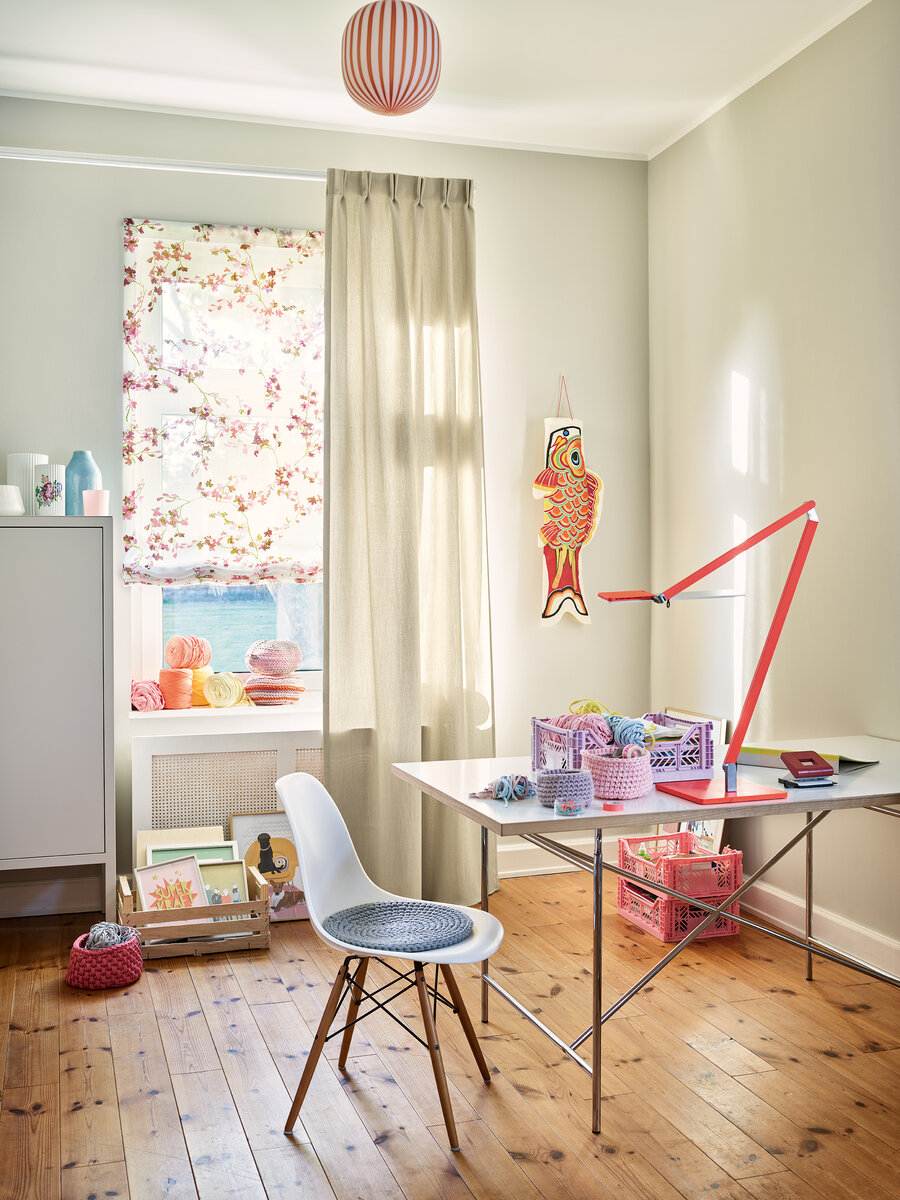KAY – with a discreet, modern and noble pattern. The burnout (devoré) is a mixed fabric made of polyester and viscose yarns. Its secret: after weaving, a paste is applied to the pattern base with a stencil, which etches away the cellulose, in this case viscose. Its look and feel: a lovely and inspiring pattern with transparent and opaque surfaces, printed several times in colour for wonderful comfort and cosiness at home.