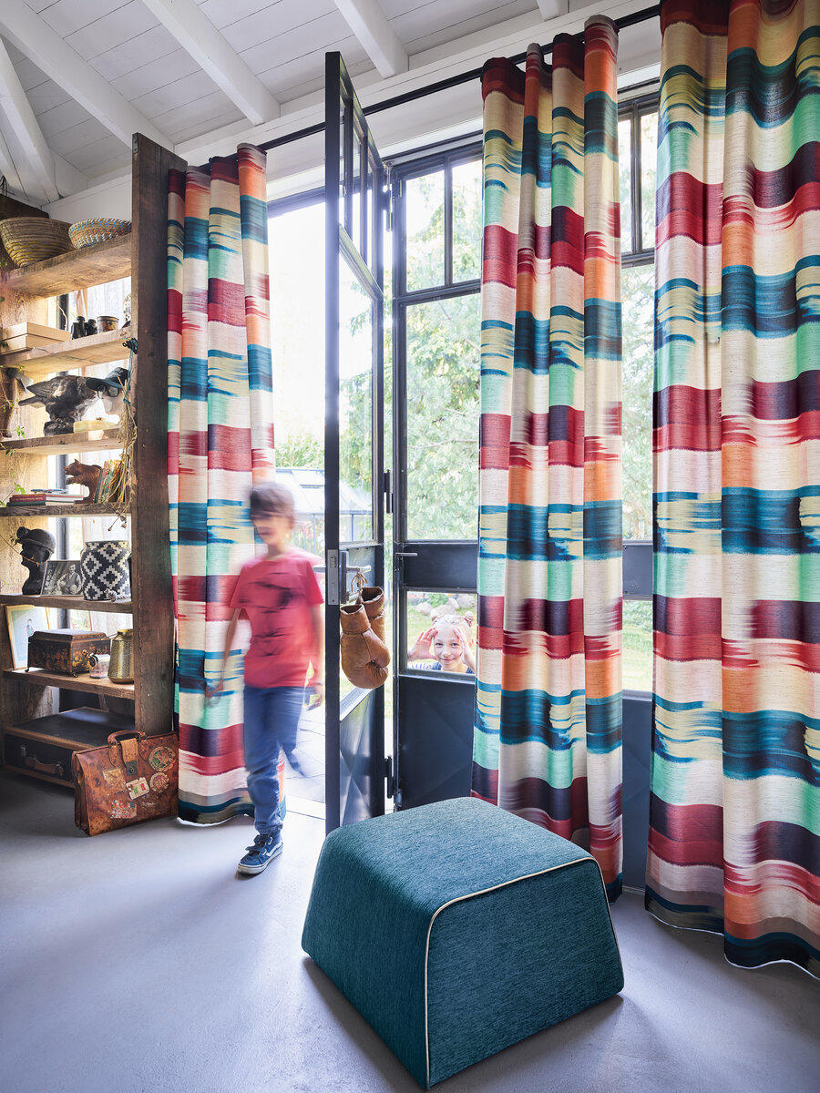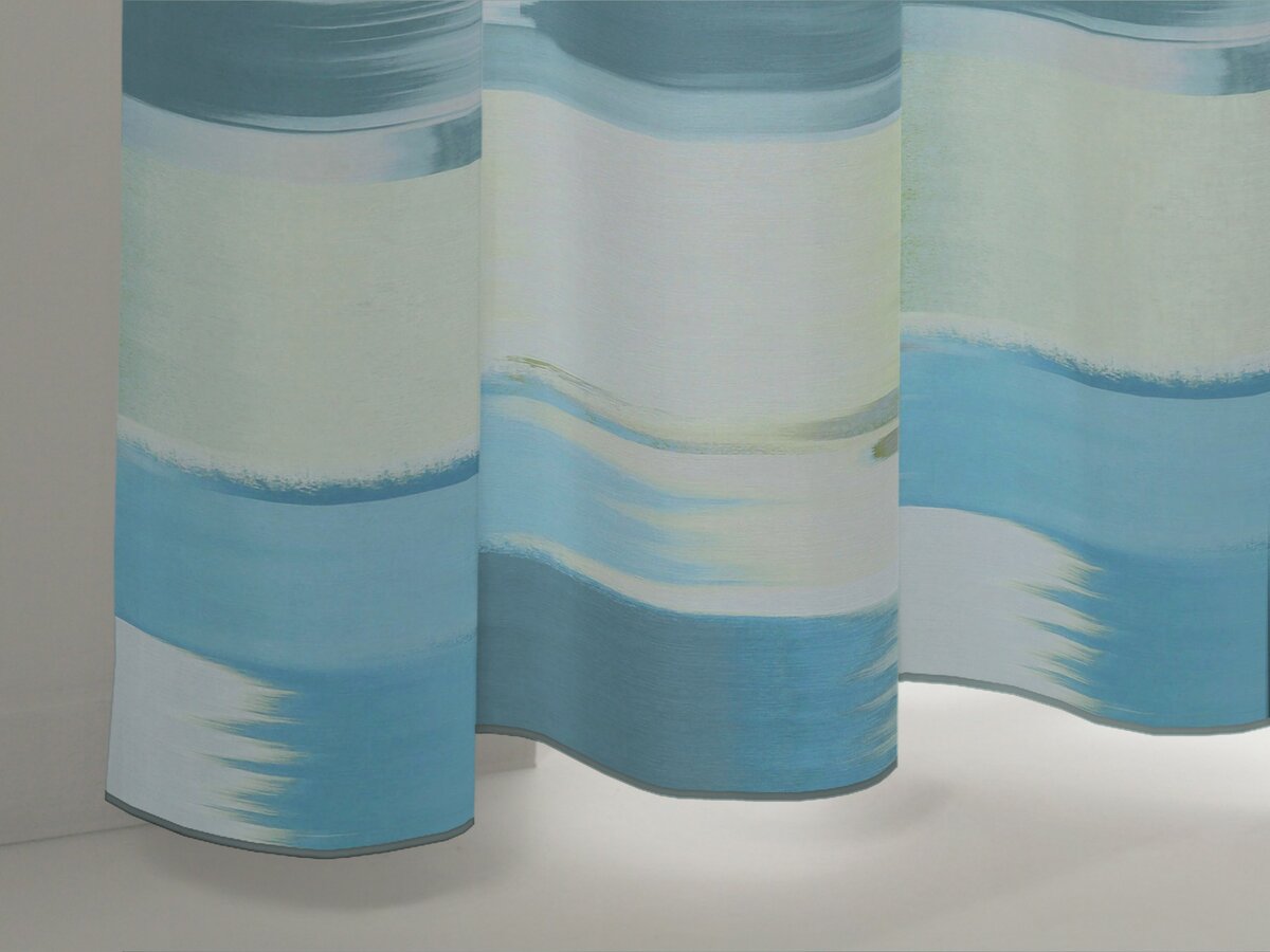 Are you modern, trend-conscious, colourful and anything but boring? Then KIANA is just like you. Depending on the ambience and colour scheme, the horizontal stripe print appears sometimes elegant, sometimes modern, and sometimes even in Mallorcan or Asian style. Its variety of colours makes it a harmonious partner for every cushion. Its colour gradients are reminiscent of batik, watercolour or chain printing. Hang real art on your window with KIANA.