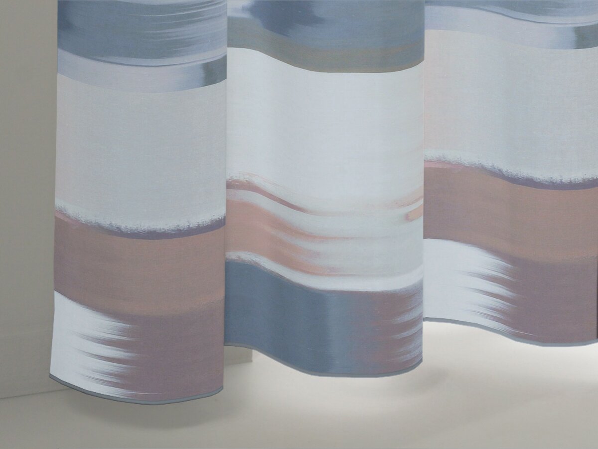 Are you modern, trend-conscious, colourful and anything but boring? Then KIANA is just like you. Depending on the ambience and colour scheme, the horizontal stripe print appears sometimes elegant, sometimes modern, and sometimes even in Mallorcan or Asian style. Its variety of colours makes it a harmonious partner for every cushion. Its colour gradients are reminiscent of batik, watercolour or chain printing. Hang real art on your window with KIANA.