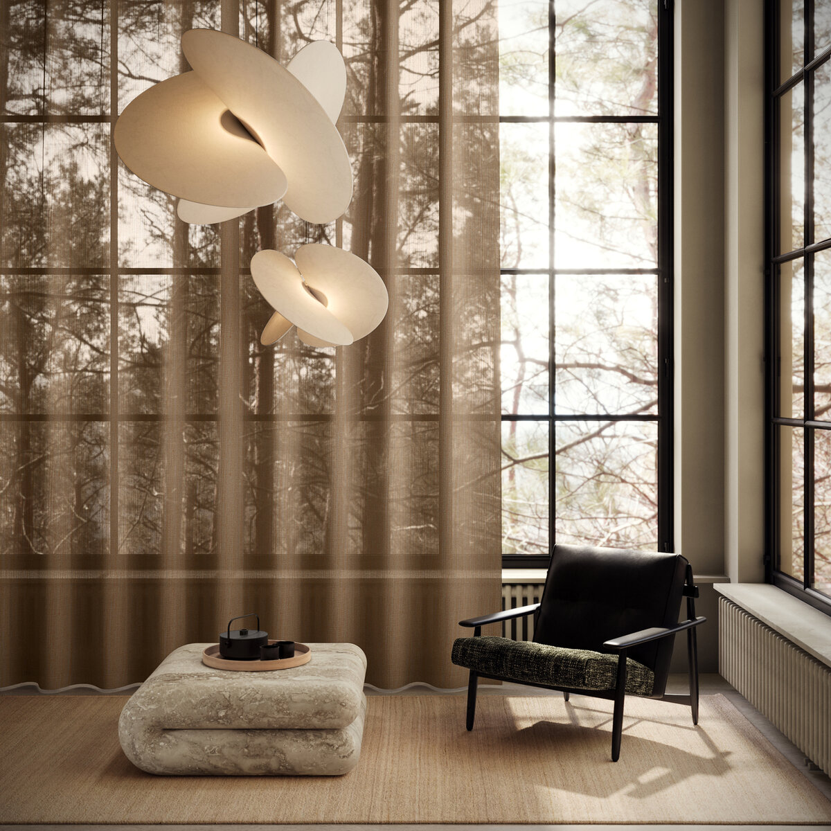 Its soft touch and breathable texture suit spaces where openness and form coexist. Colors range from soft sand to fresh blue – unpretentious and versatile.