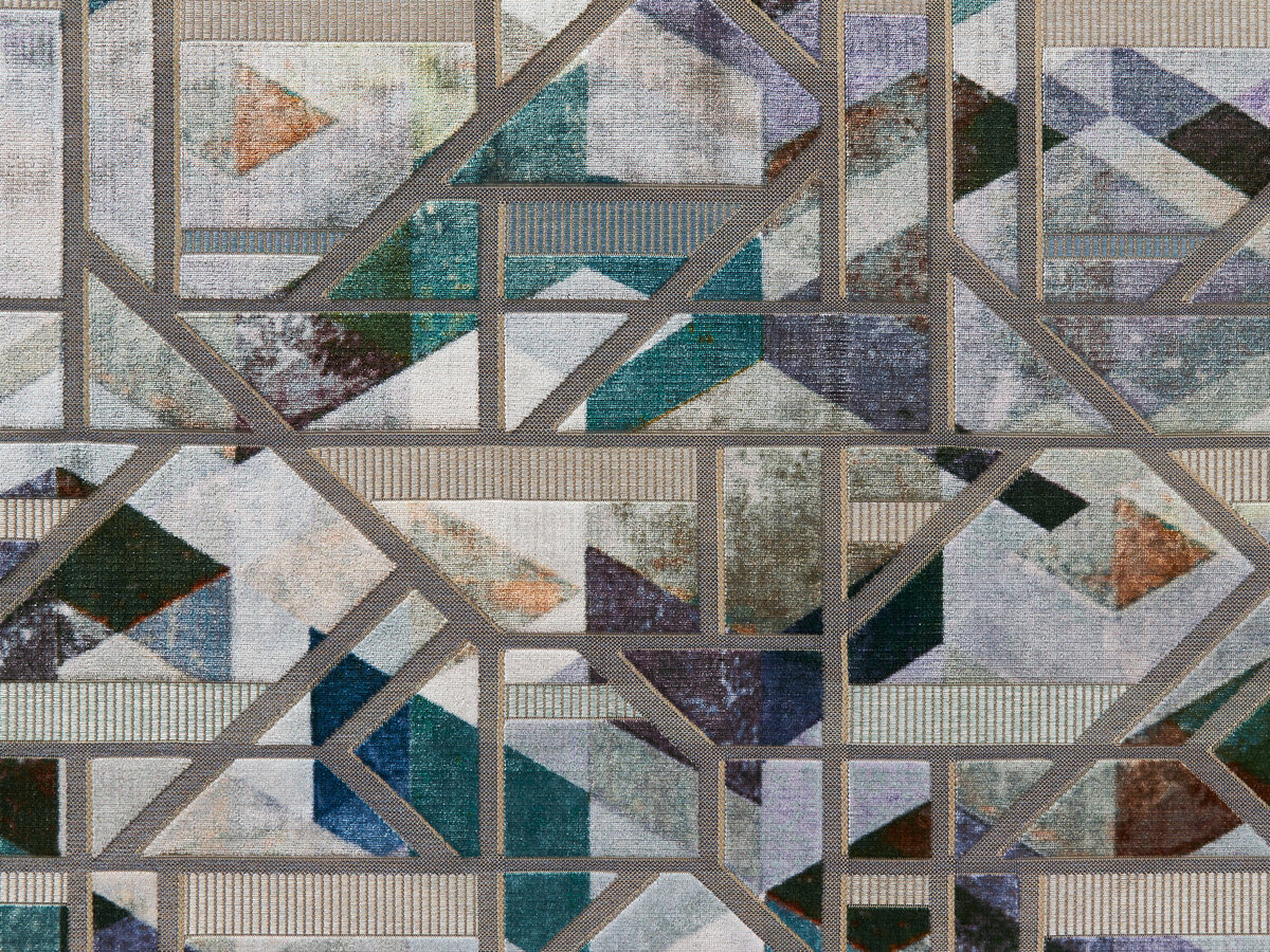 Many artists are guided by the inspiration of randomness for their works. This decorative jacquard velour plays with the seemingly random combination of color fields and geometry. A dazzling print composed of countless small polygonal fields is overlaid on the clear grid of the geometric jacquard design. Since the two patterns are created in two separate production steps, the print motif and fabric overlap in changing formations, making KUBIST an attractive eye-catcher on upholstery as well as when used as decorative curtain fabric.