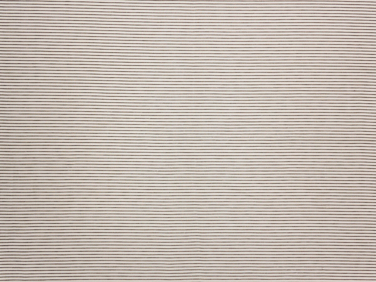 Lace is woven on an open gauze warp, which gives this fabric a fine transparency. Thin, horizontal stripes are edged on each side with bouclé yarn, which has a natural look and gives this Trevira fabric its unique appearance.
