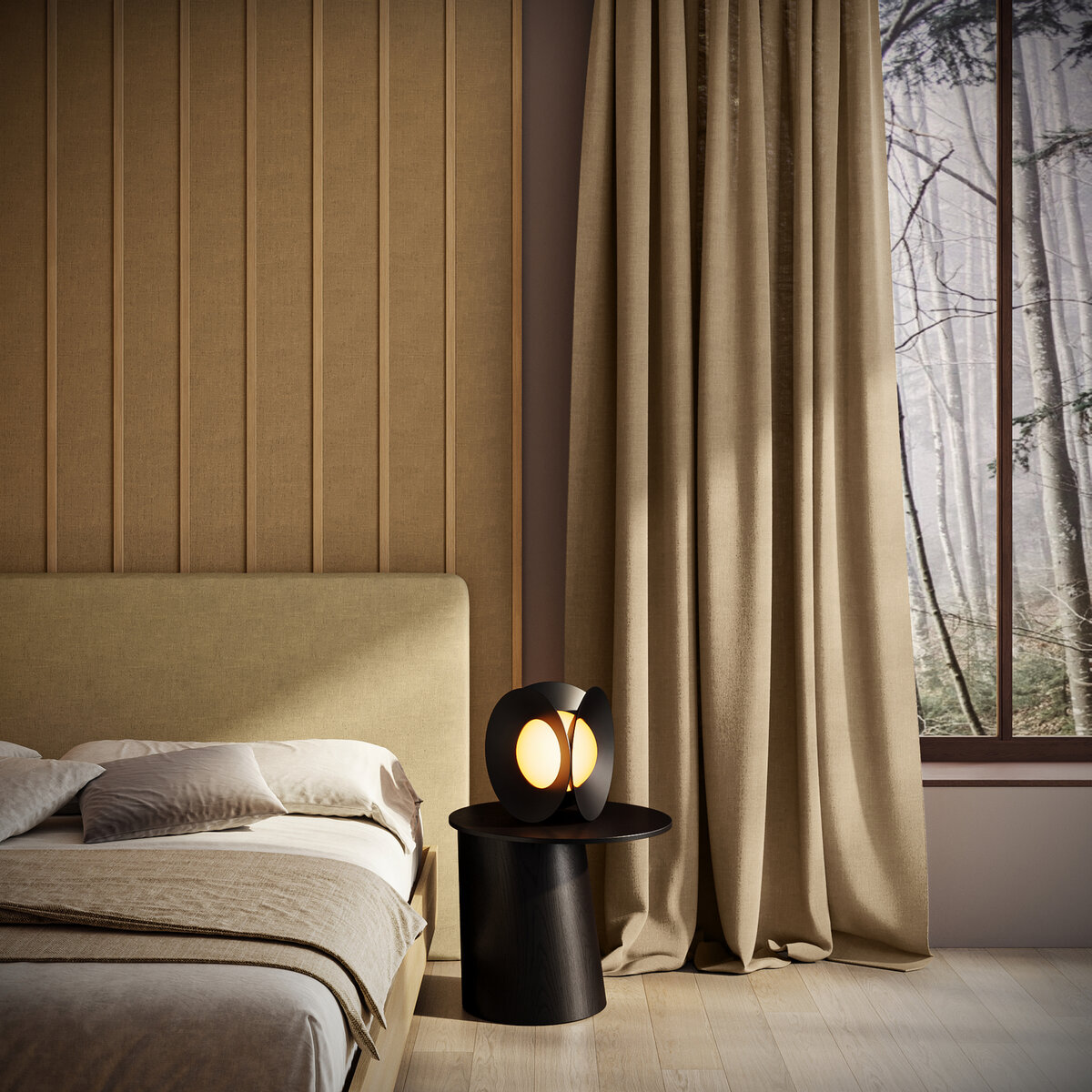 Its double-sided texture enhances its versatility, with linen adding naturalness and PES providing care ease. The calm color range – from cream to steel blue – is both timeless and soothing.