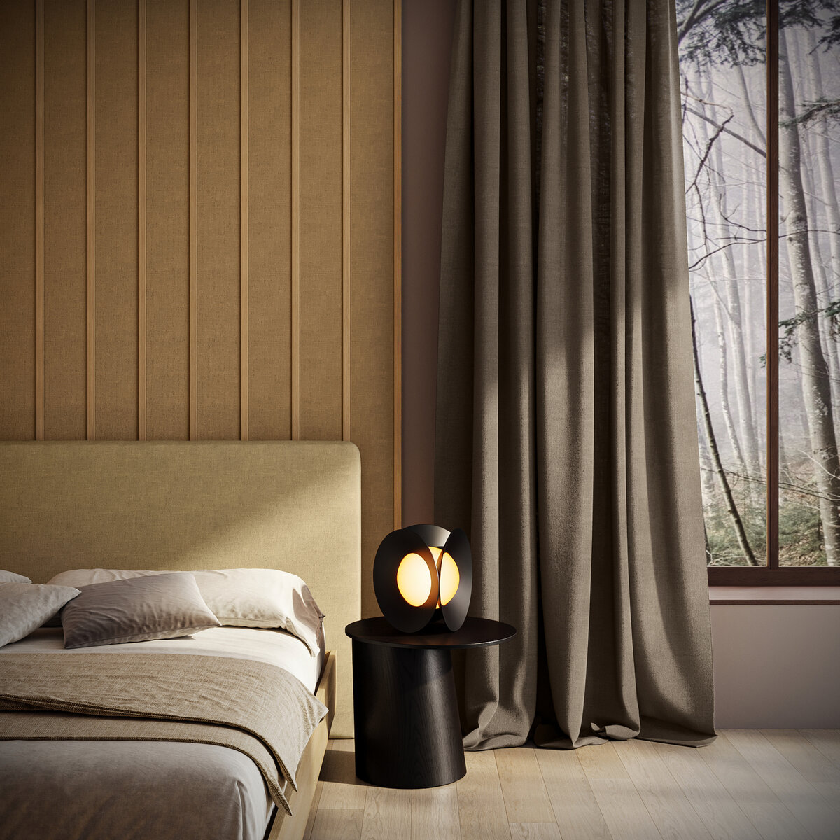 Its double-sided texture enhances its versatility, with linen adding naturalness and PES providing care ease. The calm color range – from cream to steel blue – is both timeless and soothing.