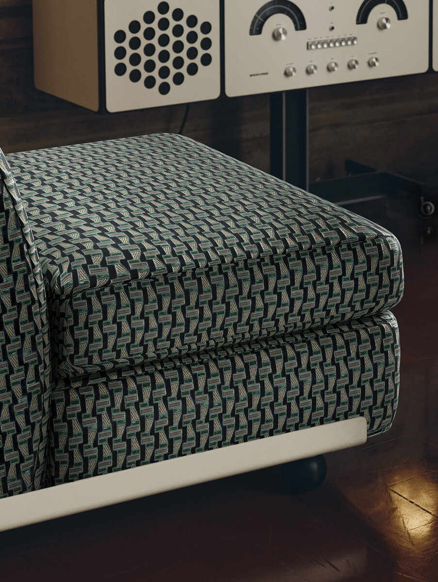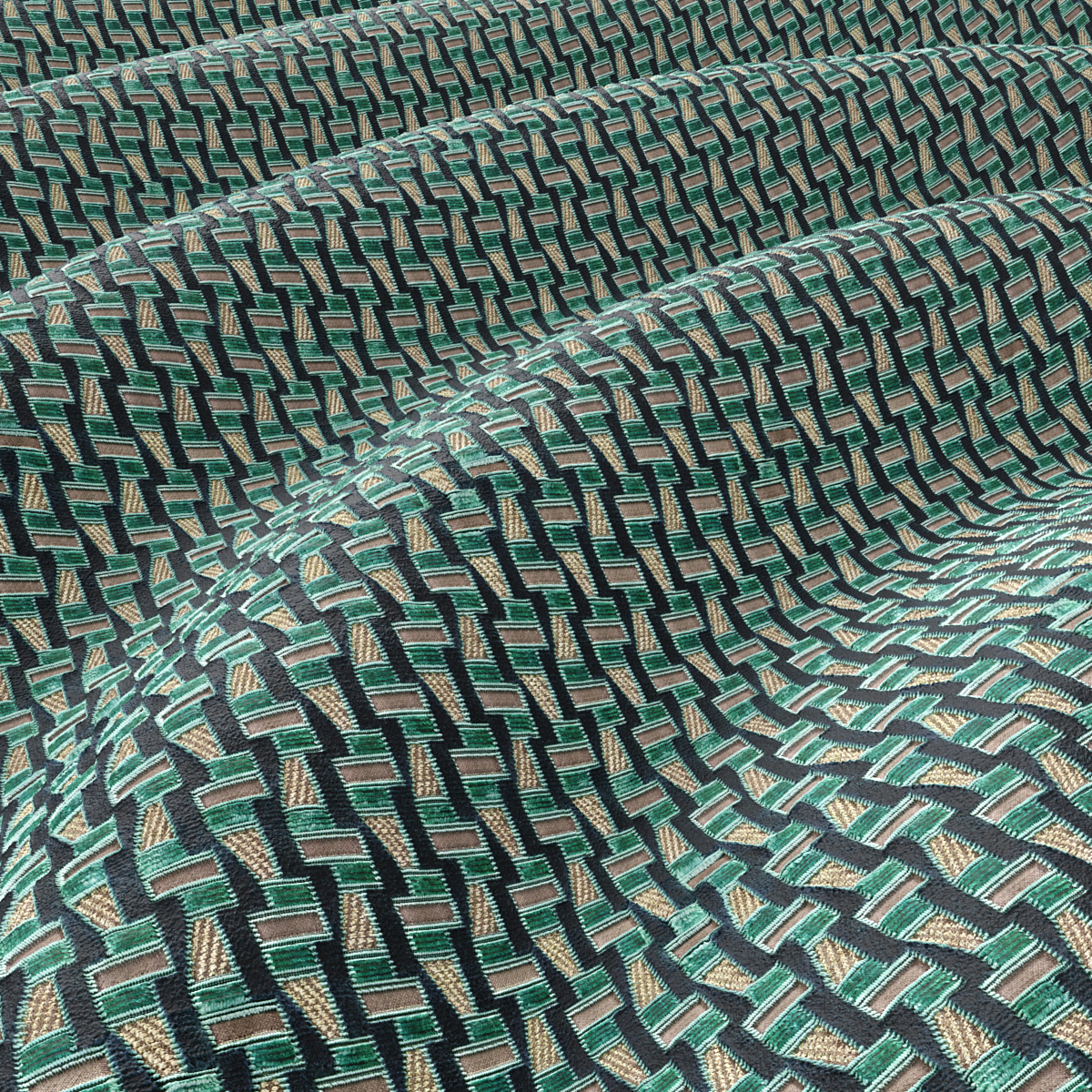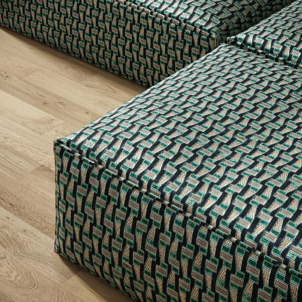 LETO Velvet’s geometric pattern combines relief structures, matte-shiny contrasts, and beguiling color mixes. The alternation between velvety velour and delicate epinglé contours creates a complex, rich all-over design with a pleasant surface effect.