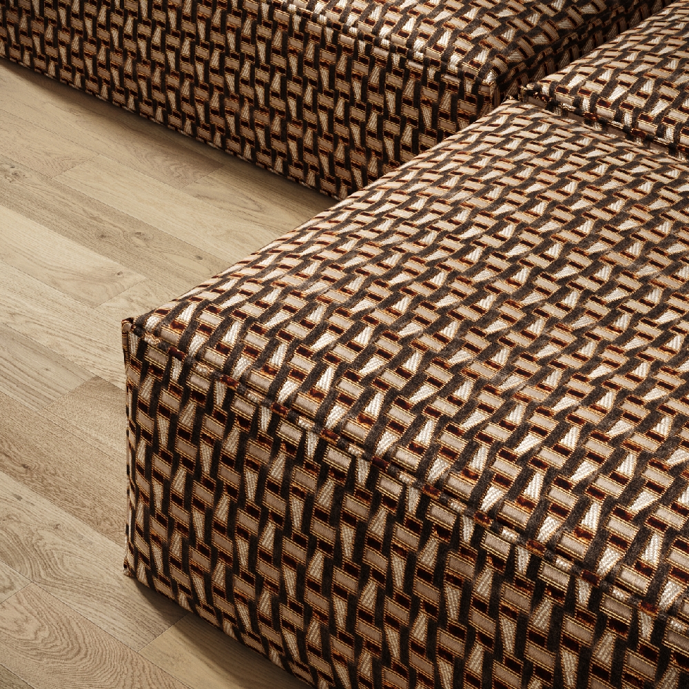 LETO Velvet’s geometric pattern combines relief structures, matte-shiny contrasts, and beguiling color mixes. The alternation between velvety velour and delicate epinglé contours creates a complex, rich all-over design with a pleasant surface effect.