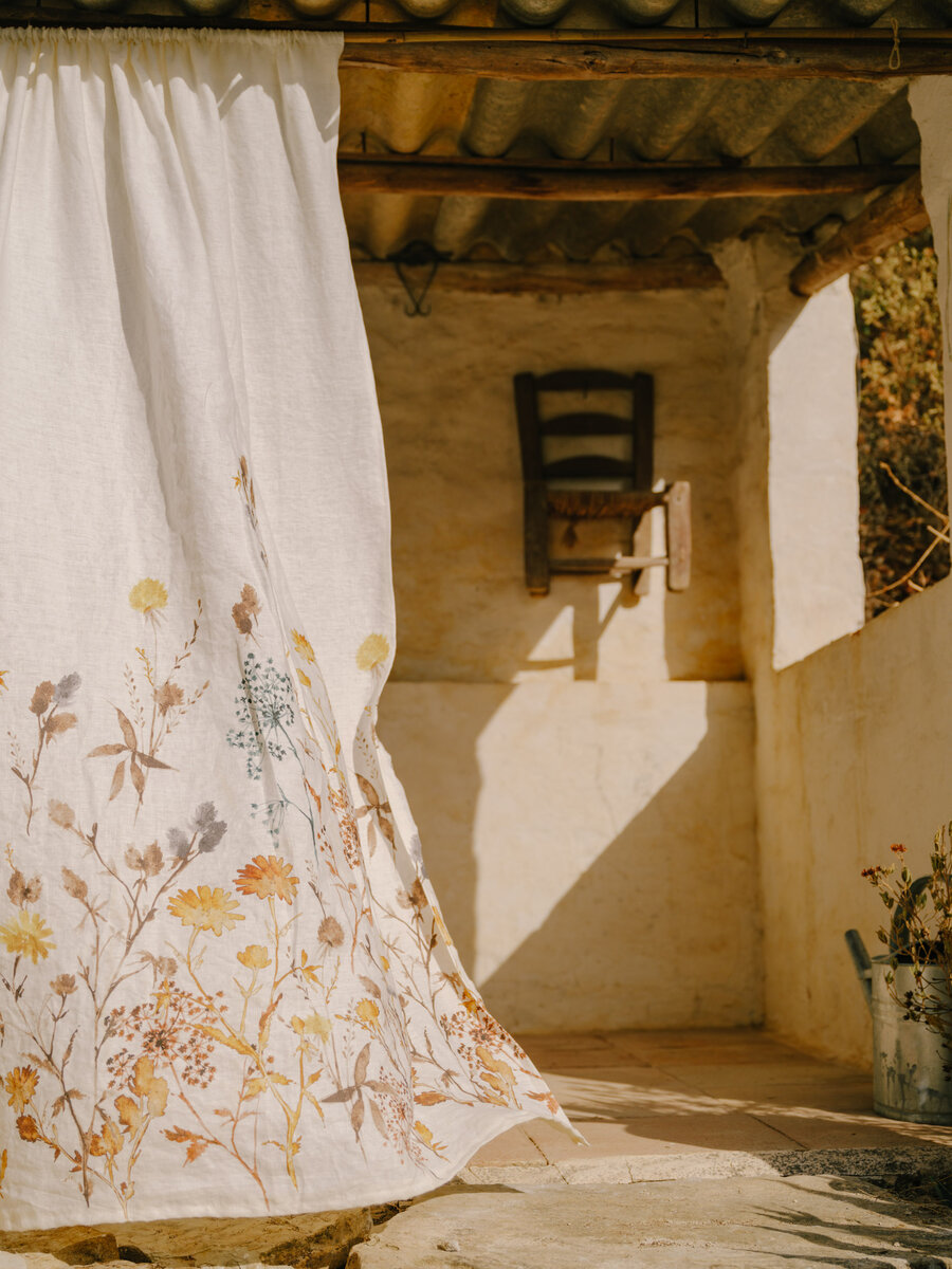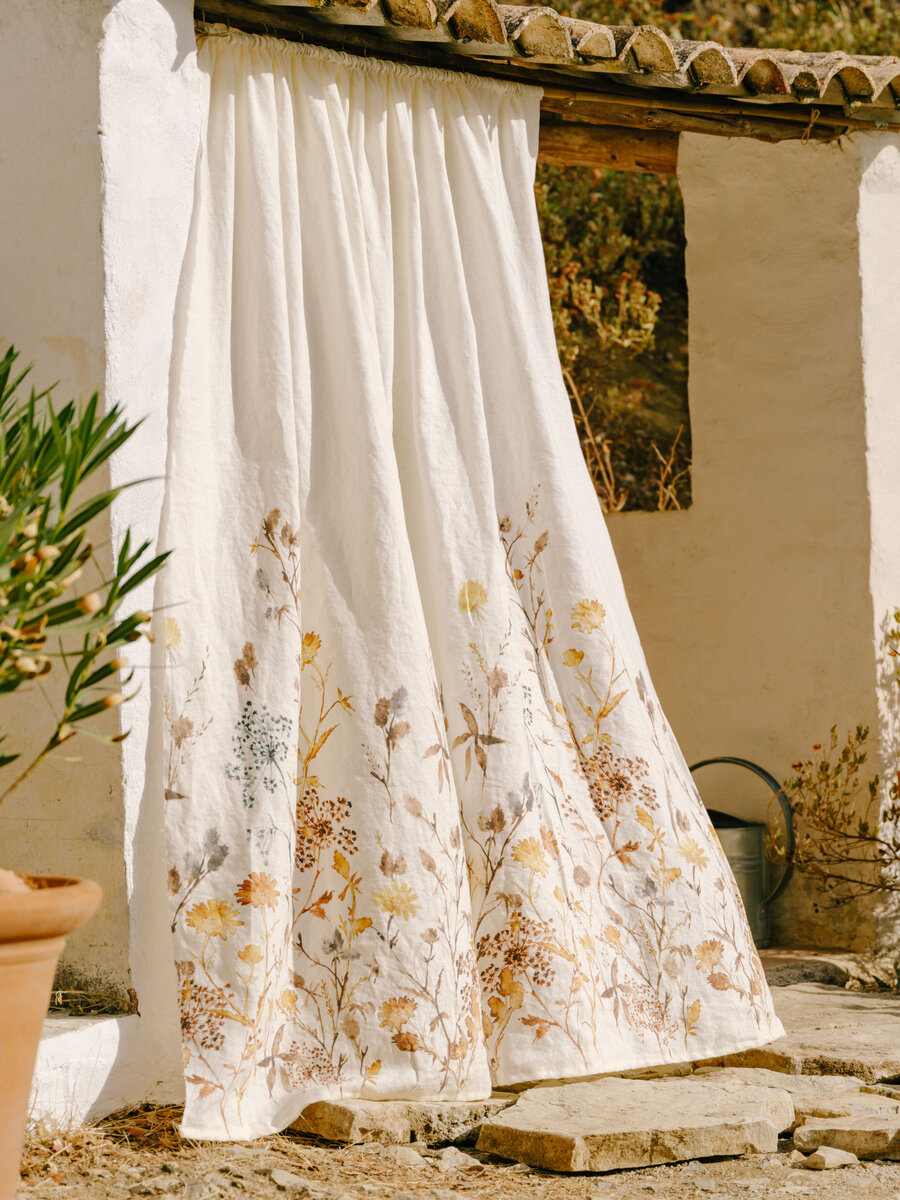 Printed digitally on the shores of Lake Como in Italy on a 100% long-fibre linen fabric, Liberté Folle offers us a panorama of fresh flowers dancing mid-height against a wide white petal linen background. The hand-painted flowers are extremely delicate. The airbrush finish gives the linen a contemporary look and extremely soft feel. Natural and fresh, this fabric shows its best potential in interiors that open out onto gardens where nature has taken over.
