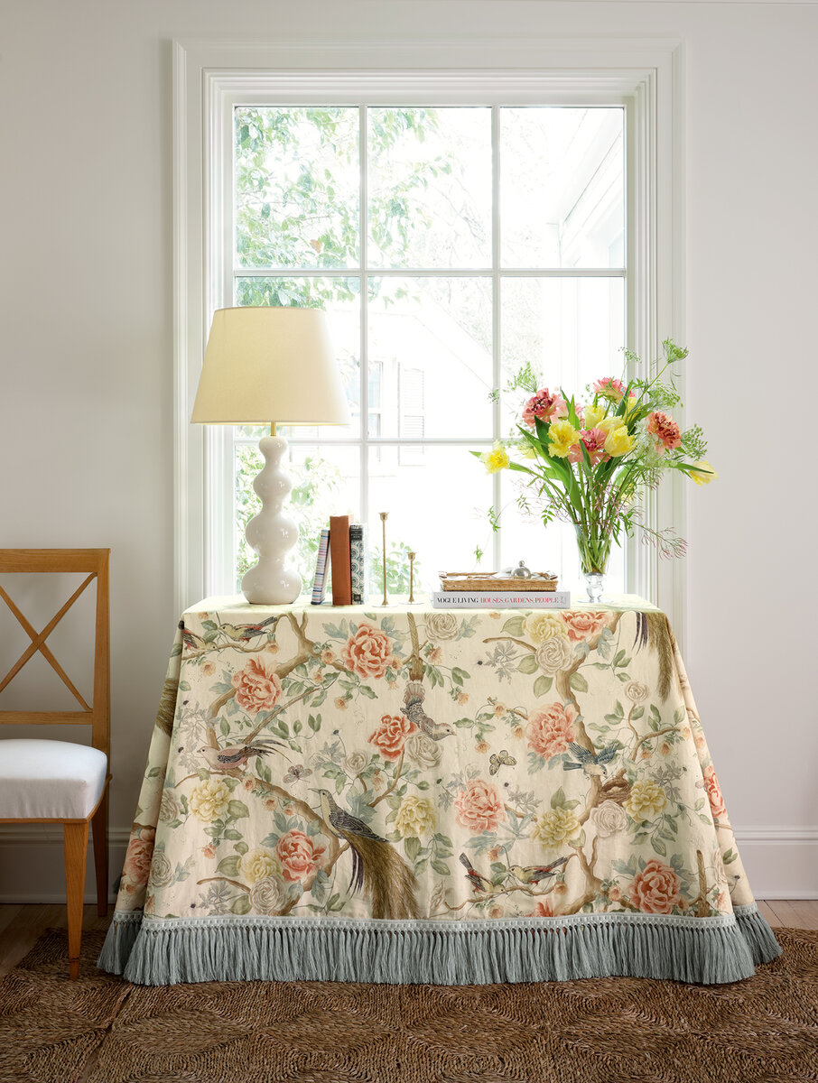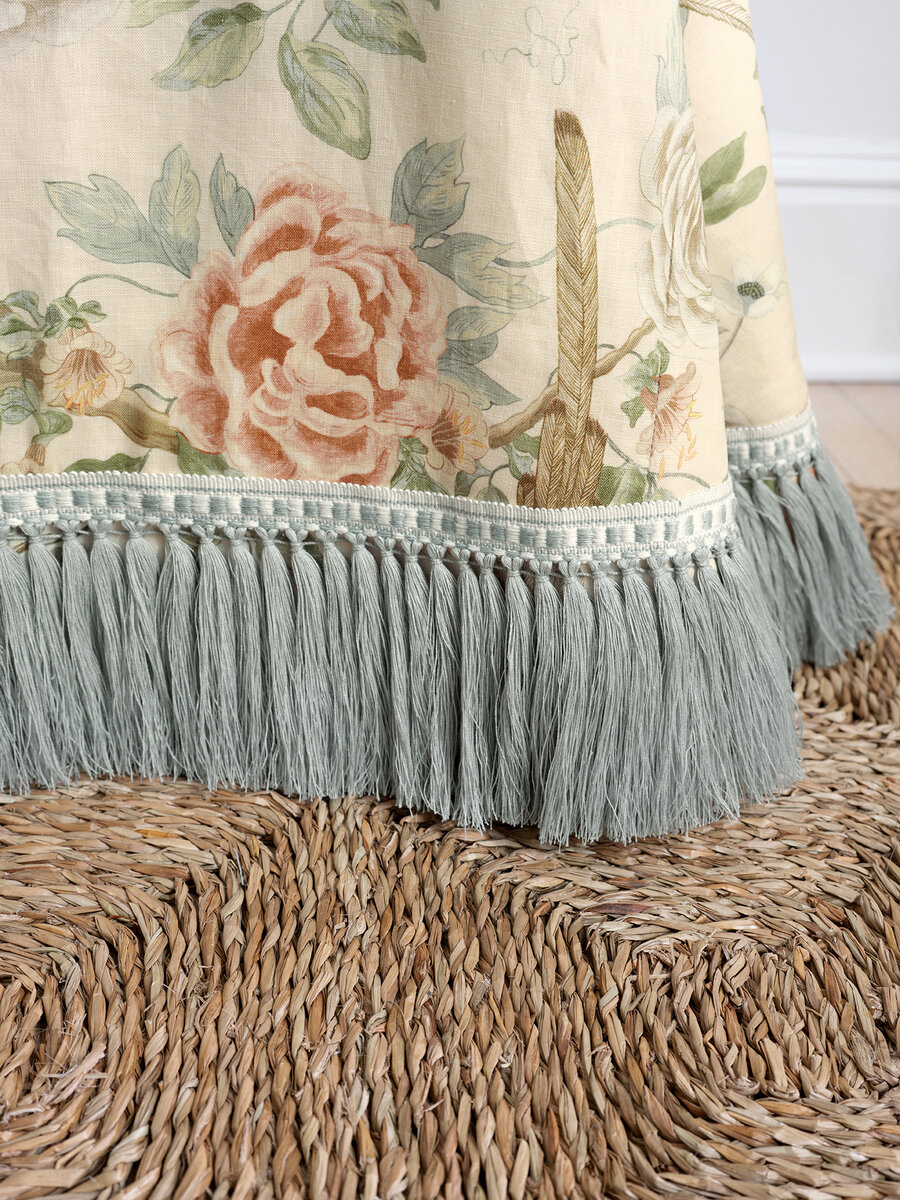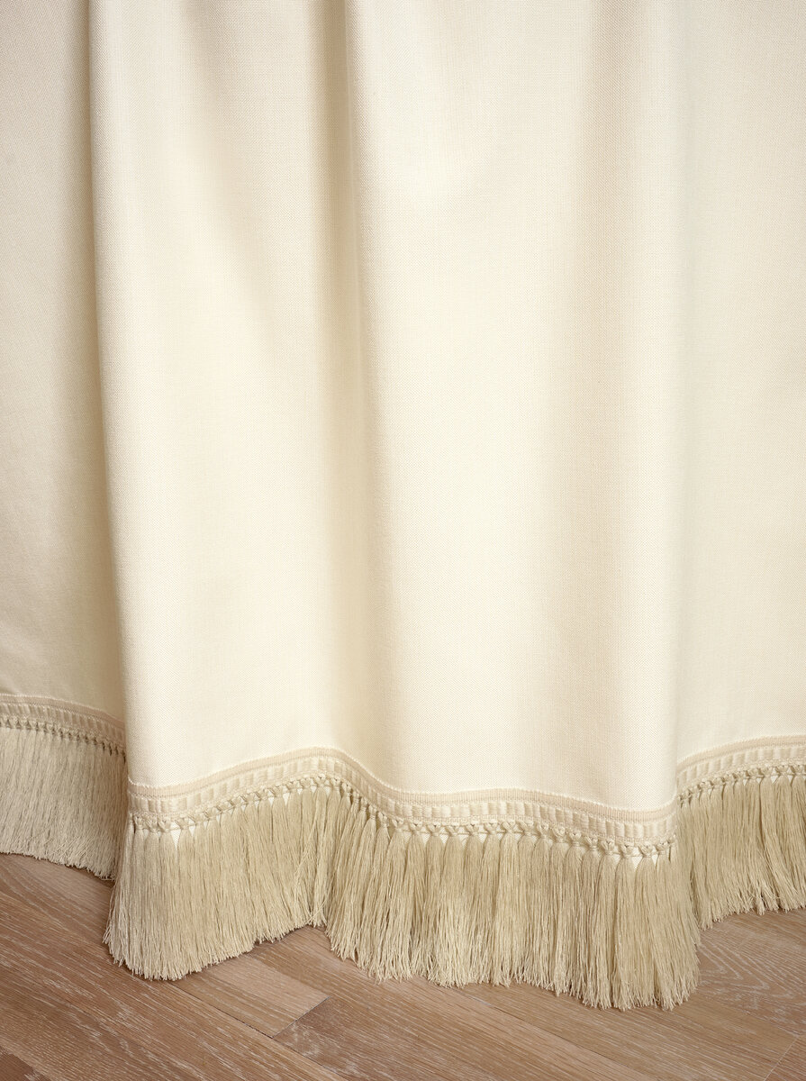 LINEN TASSEL FRINGE is the long fringe you’ve been waiting for! The style of this trim offers a perfectly balanced tape and fringe combination. A decorative dobby border at the top complements the fringe itself, which is added by hand during the weaving process. There is an elegant softness to each of the four colors offered, achieved by hand dyeing the linen yarns.