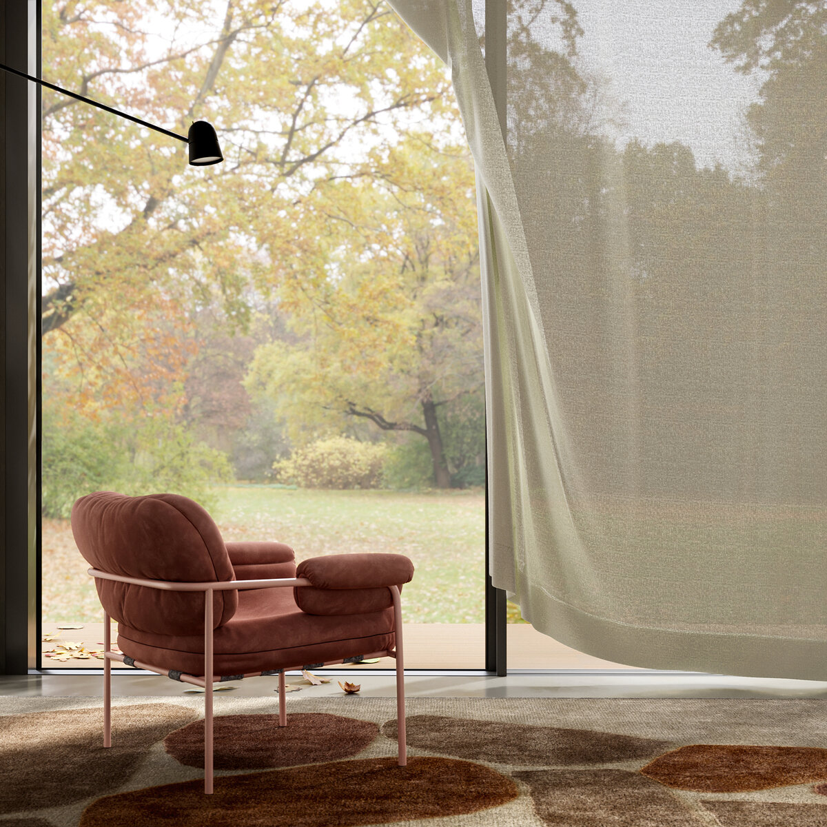 LOU is LILA’s sibling. Its texture and transparency, paired with its extremely soft finish, make this fabric one of a kind. Eight natural shades ranging from Chalk and Buttercream to Hazelnut instill a sense of calm and serenity. LOU is 100% sustainable, easy to maintain and brings joy to interiors thanks to its materiality, and to the special finishing processes it undergoes.