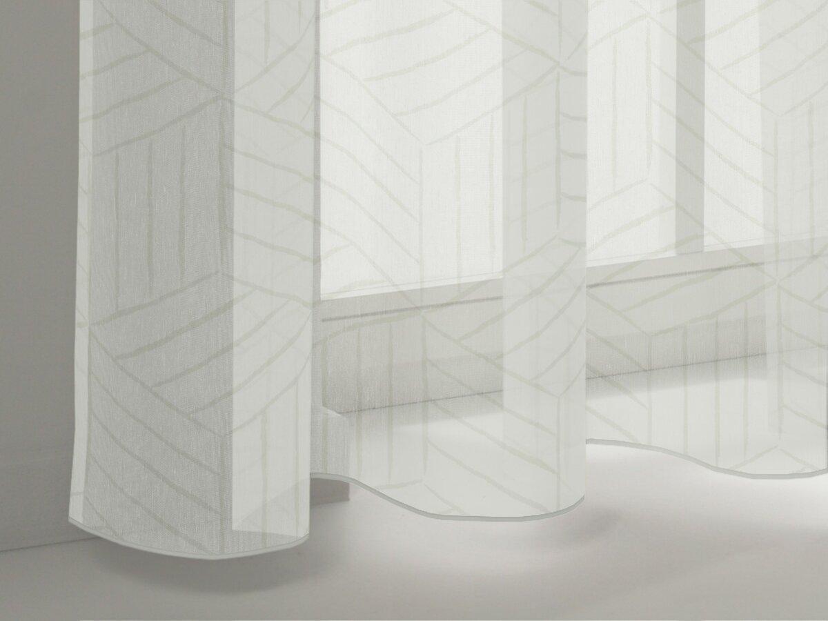 Lightness and transparency characterise LUI. A graphic print in artistic lines, almost as if painted with chalk, adorns the easy-care and antiviralfinished textile. The geometric design in four appealing colours creates a great effect against the light.