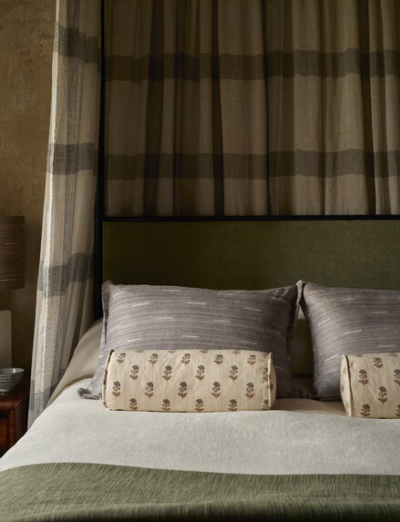 Delicate yet vibrant, Luli blossoms with the subtle charm of hand-blocked sprigs scattered across a strié cotton ground. Available in five sophisticated colourways, each print carries the gentle rhythm of craft passed down through generations. Combining the timeless charm of English gardens with the rich tradition of handcrafted textiles, Luli is a versatile and useful print suitable for a variety of applications.