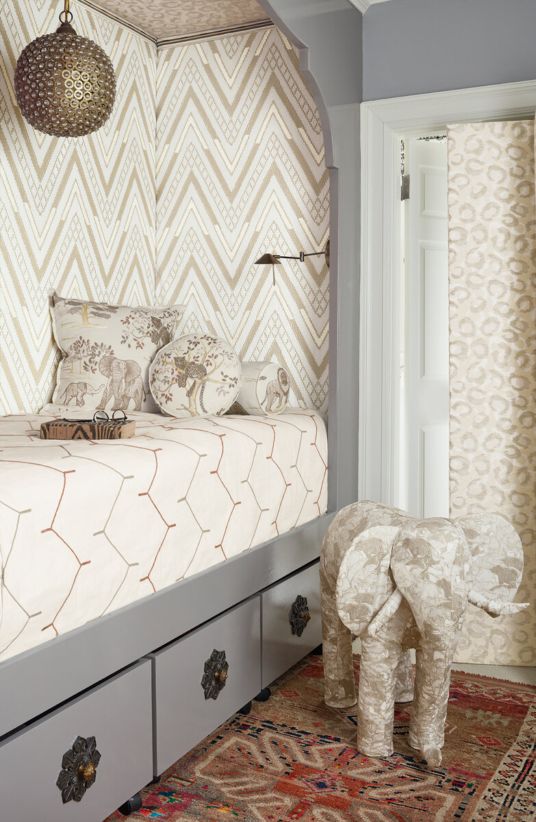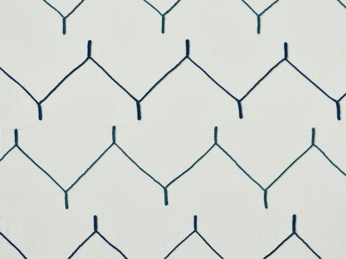 This exceptional rustic chevron design has dimension and movement running throughout the fabric. A very special technique is used, where three different coloured wool yarns are live-spun into a single cord and then a skilled artisan hand guides the embroidery machine. MAASAI MARA is named for one of Africa’s top protected wildlife destinations in Kenya’s flagship conservation area.
