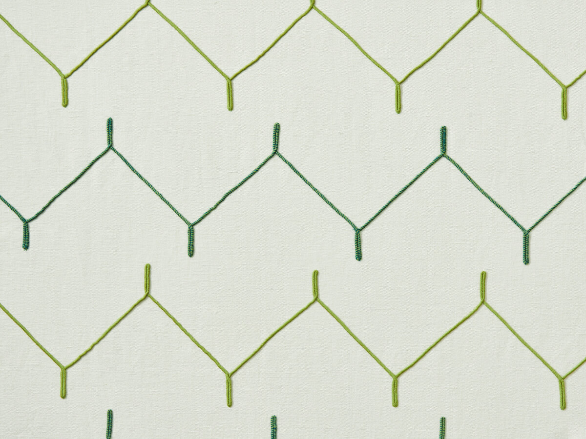 This exceptional rustic chevron design has dimension and movement running throughout the fabric. A very special technique is used, where three different coloured wool yarns are live-spun into a single cord and then a skilled artisan hand guides the embroidery machine. MAASAI MARA is named for one of Africa’s top protected wildlife destinations in Kenya’s flagship conservation area.