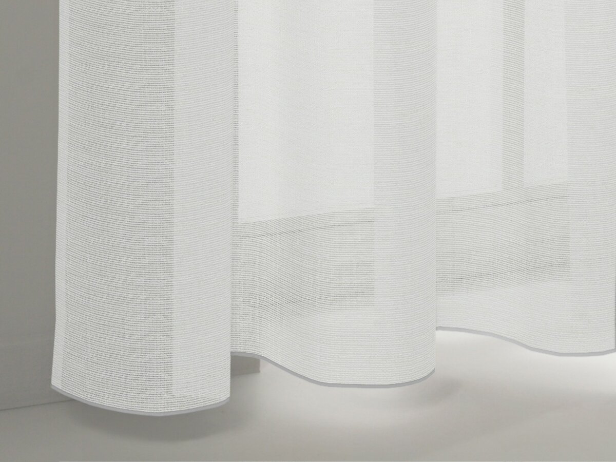 MADAME MIM combines two different fabric textures with sophistication and traditional craftsmanship. The base design consists of a strongly structured, transparent in-between. Above the base, MADAME MIM is evocative of transparent cheese linen. An elaborate embroidery with binding and breakthrough holes blends both materials into a light-hearted overall work that displays its beauty perfectly in a modern context.