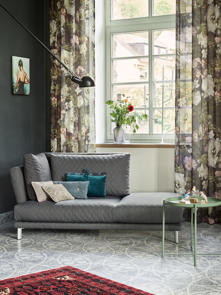 With MALAIKA you can enjoy your own oasis of calm thanks to the delicately structured base fabric, its soft, flowing feel, the full-surface floral print, its understated colour tones, its natural look, the expressive design – and a new, slower living experience that lets you take a step back.