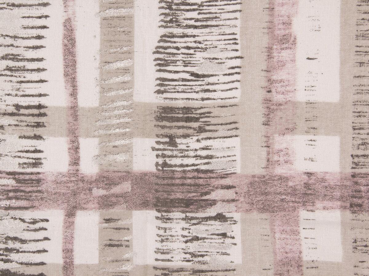 Malaya is a lavish printed fabric on a transparent linen blend with intriguing metallic accents. This room-height base fabric features a pleasing, relaxed brushstroke design that recalls light reflected off of desert sand. Its pattern hearkens back to abstract, natural ceramicware.