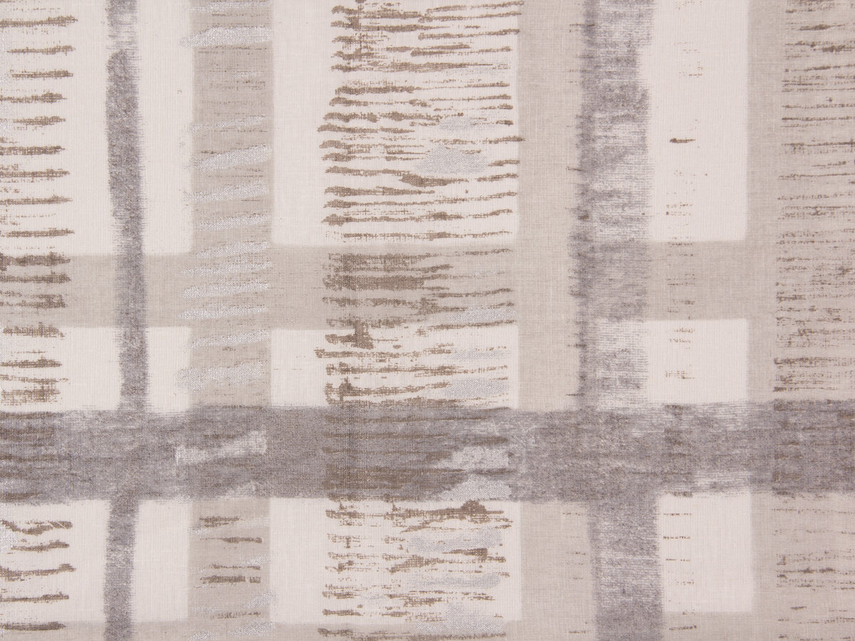 Malaya is a lavish printed fabric on a transparent linen blend with intriguing metallic accents. This room-height base fabric features a pleasing, relaxed brushstroke design that recalls light reflected off of desert sand. Its pattern hearkens back to abstract, natural ceramicware.