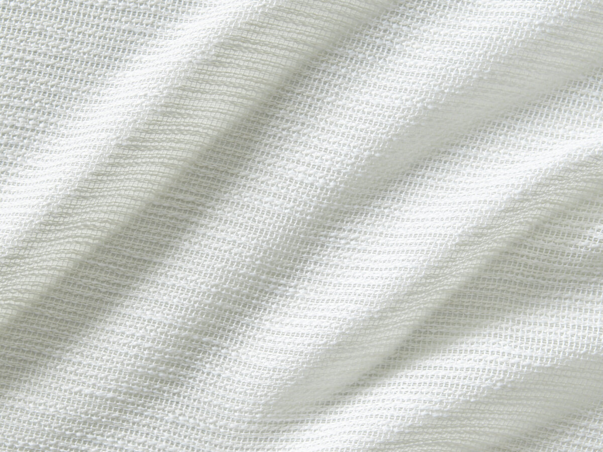Für die in MARLEY verwendeten Garne wurde Leinen mit Polyesterfasern zu einem Zwirn mit extraweichem und langgezogenem Flamé-Effekt verarbeitet. In der offenen, leicht zu drapierenden Struktur des halbtransparenten Drehergewebes, kommt dessen natürliche Unregelmäßigkeit besonders gut zur Geltung.