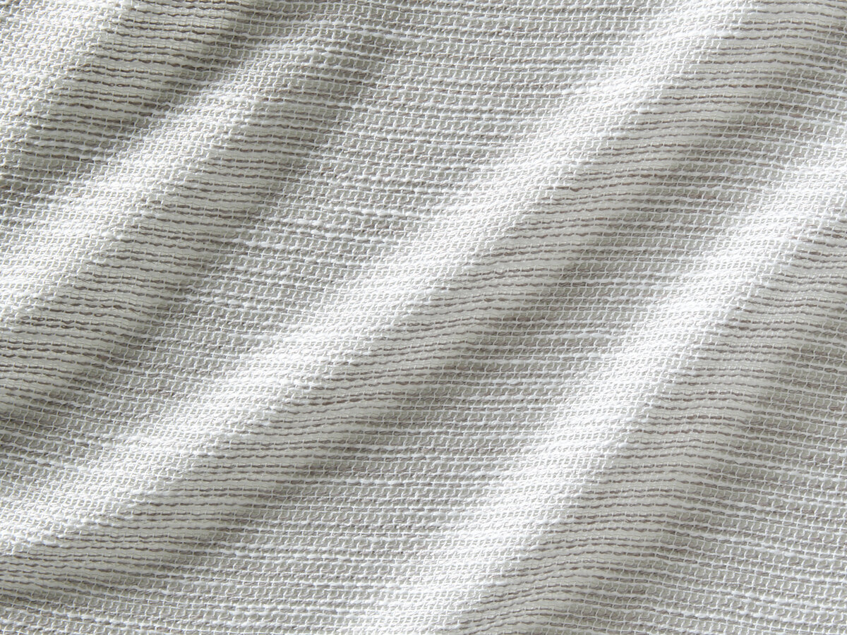 Für die in MARLEY verwendeten Garne wurde Leinen mit Polyesterfasern zu einem Zwirn mit extraweichem und langgezogenem Flamé-Effekt verarbeitet. In der offenen, leicht zu drapierenden Struktur des halbtransparenten Drehergewebes, kommt dessen natürliche Unregelmäßigkeit besonders gut zur Geltung.