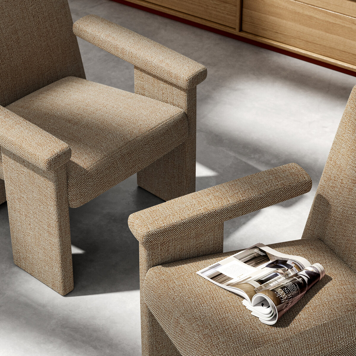 With our MATCH POINT upholstery fabric, everything simply matches up. The three-dimensional texture harmonizes with the 28 richly contrasting colors, while the halogen-free fabric is in keeping with our commitment to the environment. The graphite backing meets our requirements for flame-retardant fabrics, and the fully synthetic yarn provides the ideal easy-care experience. And, of course, it goes with any interior, be it vintage, Bauhaus, or country house.