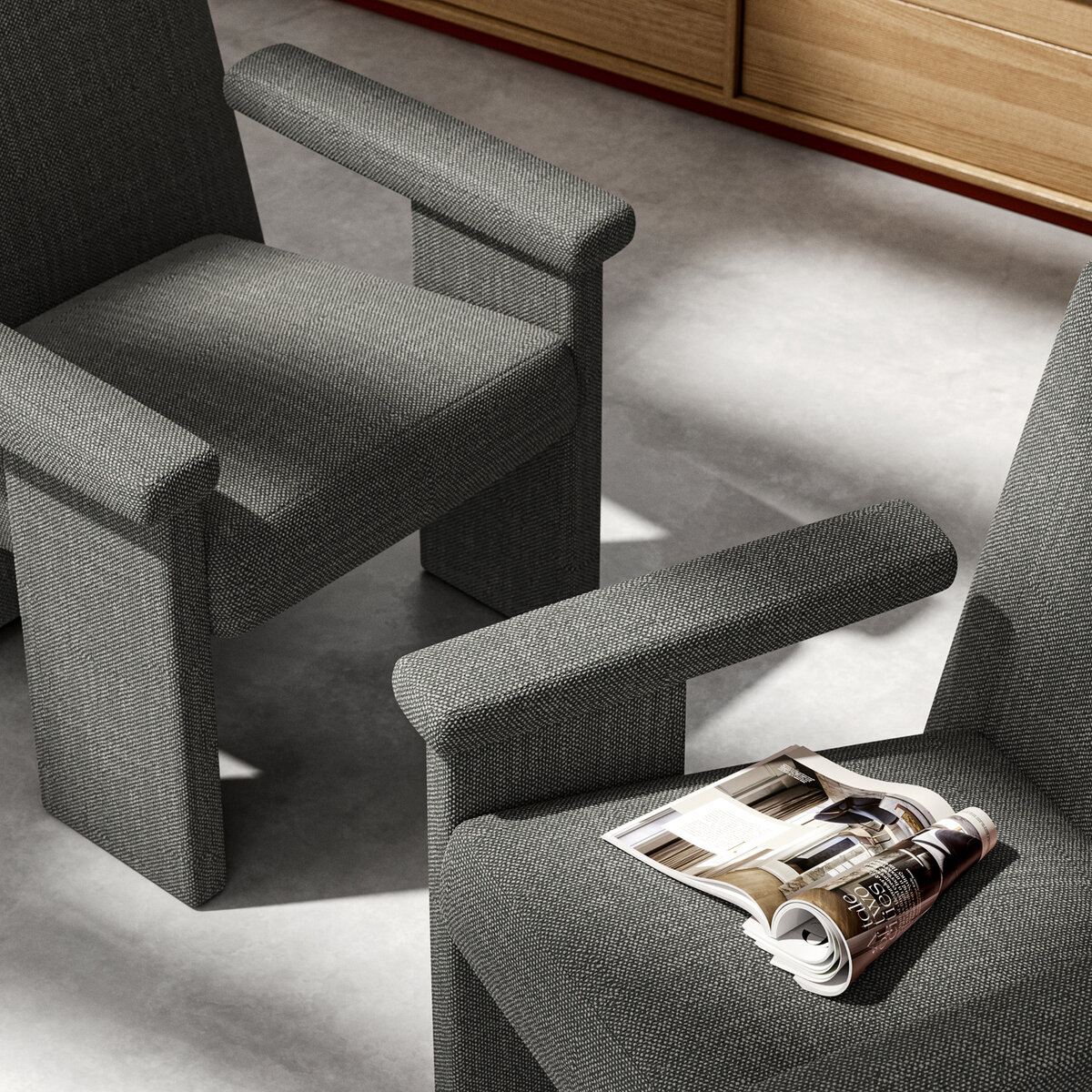With our MATCH POINT upholstery fabric, everything simply matches up. The three-dimensional texture harmonizes with the 28 richly contrasting colors, while the halogen-free fabric is in keeping with our commitment to the environment. The graphite backing meets our requirements for flame-retardant fabrics, and the fully synthetic yarn provides the ideal easy-care experience. And, of course, it goes with any interior, be it vintage, Bauhaus, or country house.