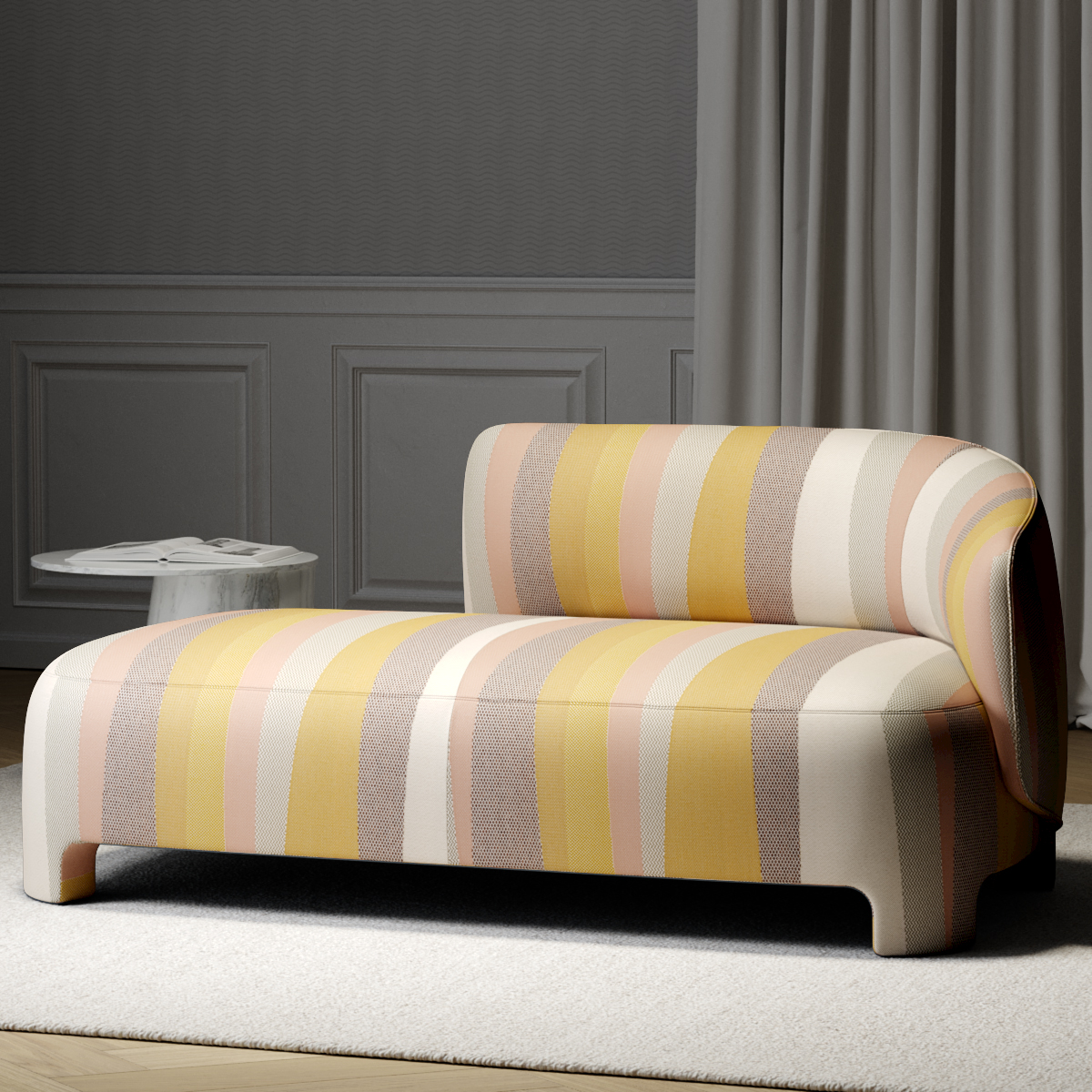 Inspired by 1960s wallpapers, MENTON plays with polychromatic colors. The weft threads of naturally structured yarn reveal the alchemy behind the Etamine Paris design palette.