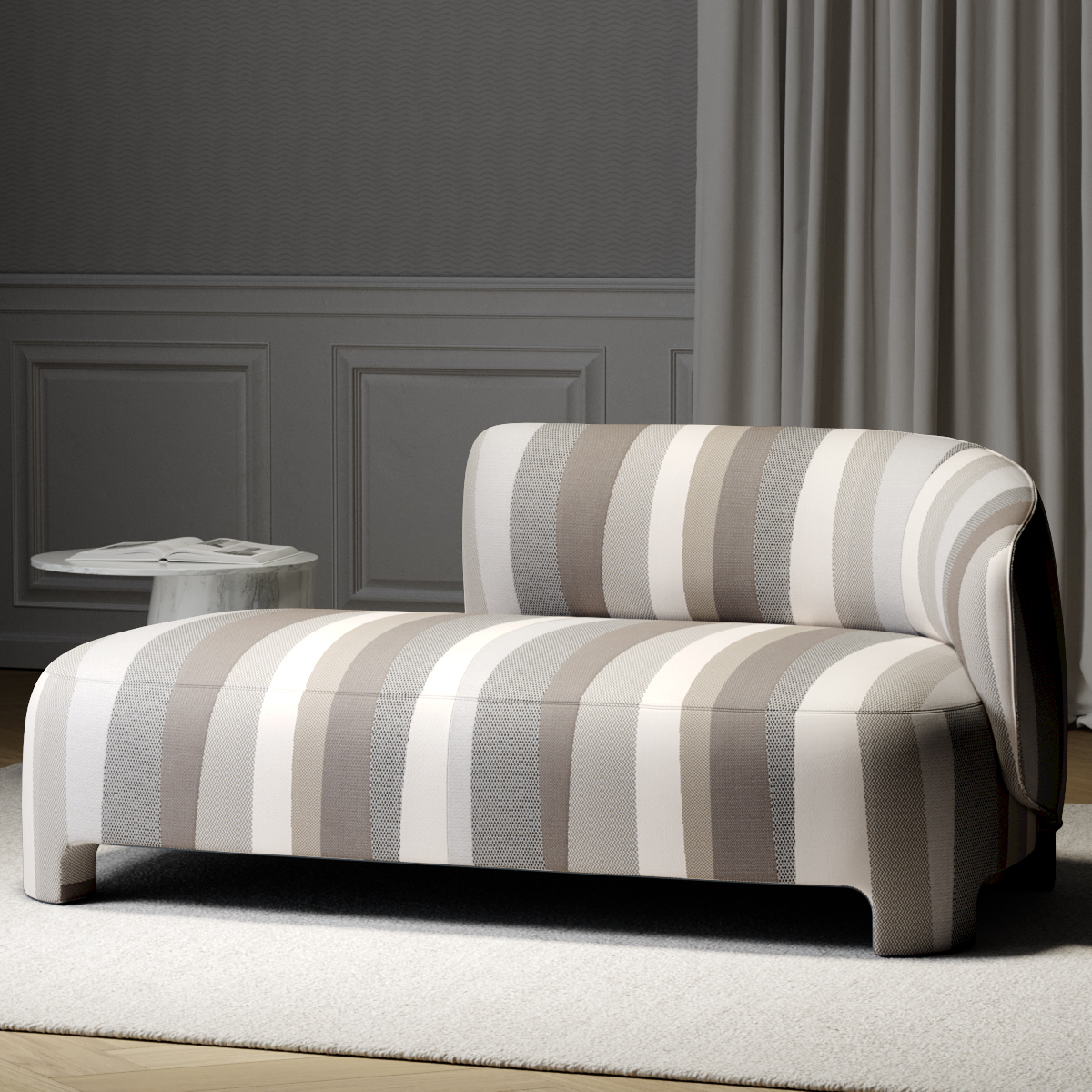 Inspired by 1960s wallpapers, MENTON plays with polychromatic colors. The weft threads of naturally structured yarn reveal the alchemy behind the Etamine Paris design palette.
