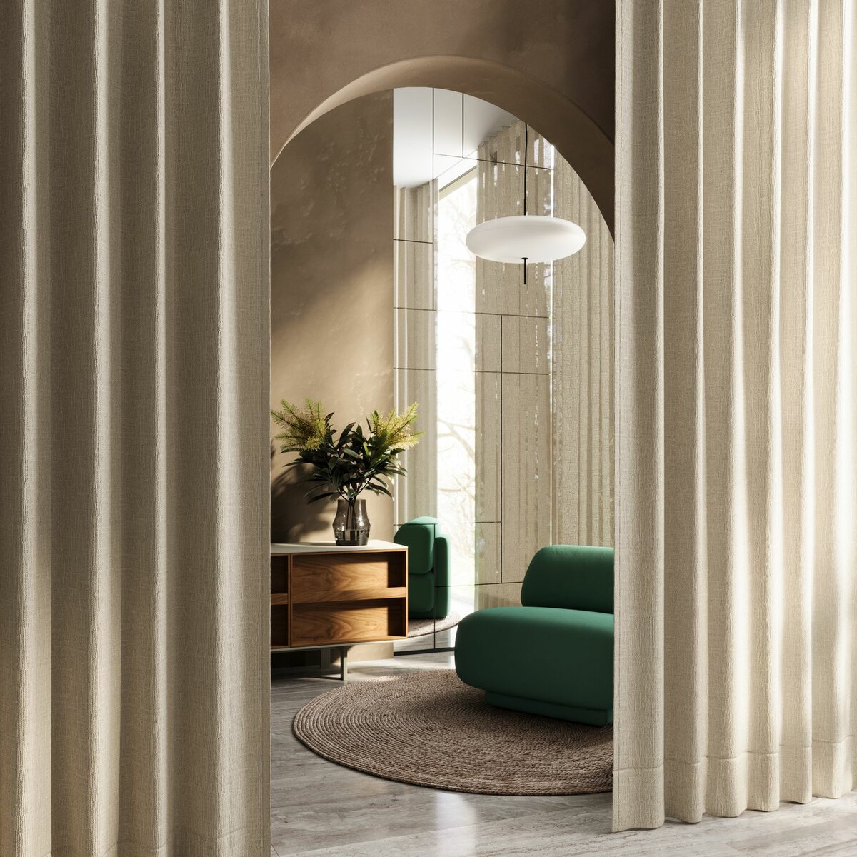 Meringue balances a soft, textured surface with a blend of 65% polyester and 35% linen. Its subtle mélange effect and playful color palette, ranging from natural tones to cheerful accents, make it a perfect choice for creating cosy, stylish spaces.