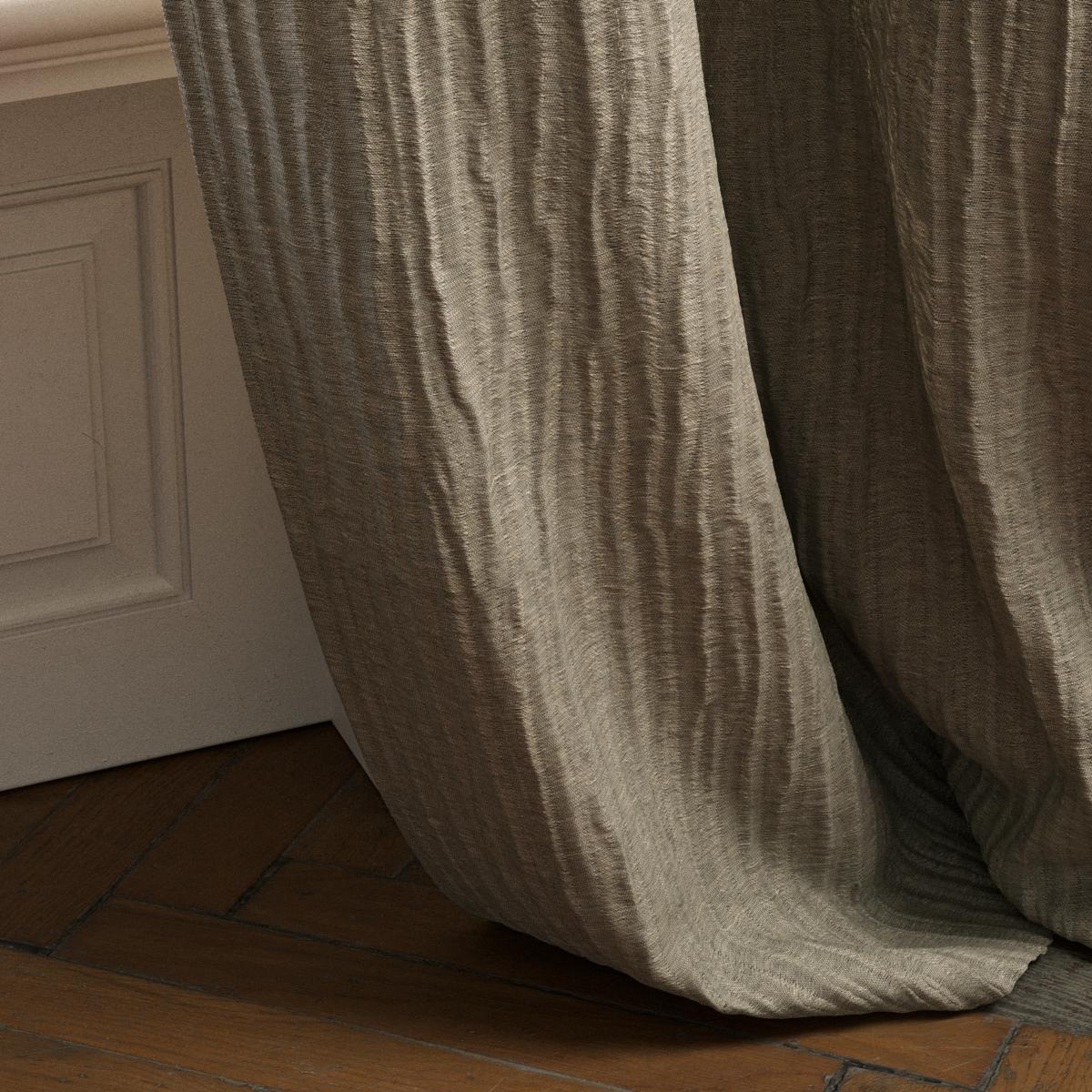 Refined with an improved material composition and an even softer drape, MESSINA SOFT reimagines the timeless elegance of linen. Its gently rippled surface recalls the undulating patterns of sand dunes, bringing a sense of movement and quiet sophistication to this double-width drapery fabric.